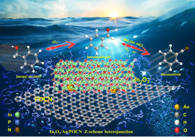團隊開發(fā)出In2O3/Au/POCN三元Z型異質結光催化劑,首次實現無溶劑條件下芐醇有氧光催化氨氧化制備苯甲腈。通過構建In2O3與磷氧共摻雜氮化碳(POCN)的Z型異質結,并引入金納米顆粒作為電子橋,顯著提升了光生載流子的分離效率。研究首次揭示了無溶劑反應中生成水的負面影響:水會占據催化劑活性位點并促進腈水解為酰胺,而添加4?分子篩可通過除水使收率提升31.7%,這一發(fā)現為無溶劑催化體系的優(yōu)化提供了關鍵策略。該工作以“Solvent-free direct aerobic photocatalytic ammoxidation of benzyl alcohol to benzonitrile on In2O3/Au/POCN”為題發(fā)表在《Journal of Catalysis》。20級博士姜旭祿為第一作者,王偉濤副教授和劉昭鐵教授為通訊作者。