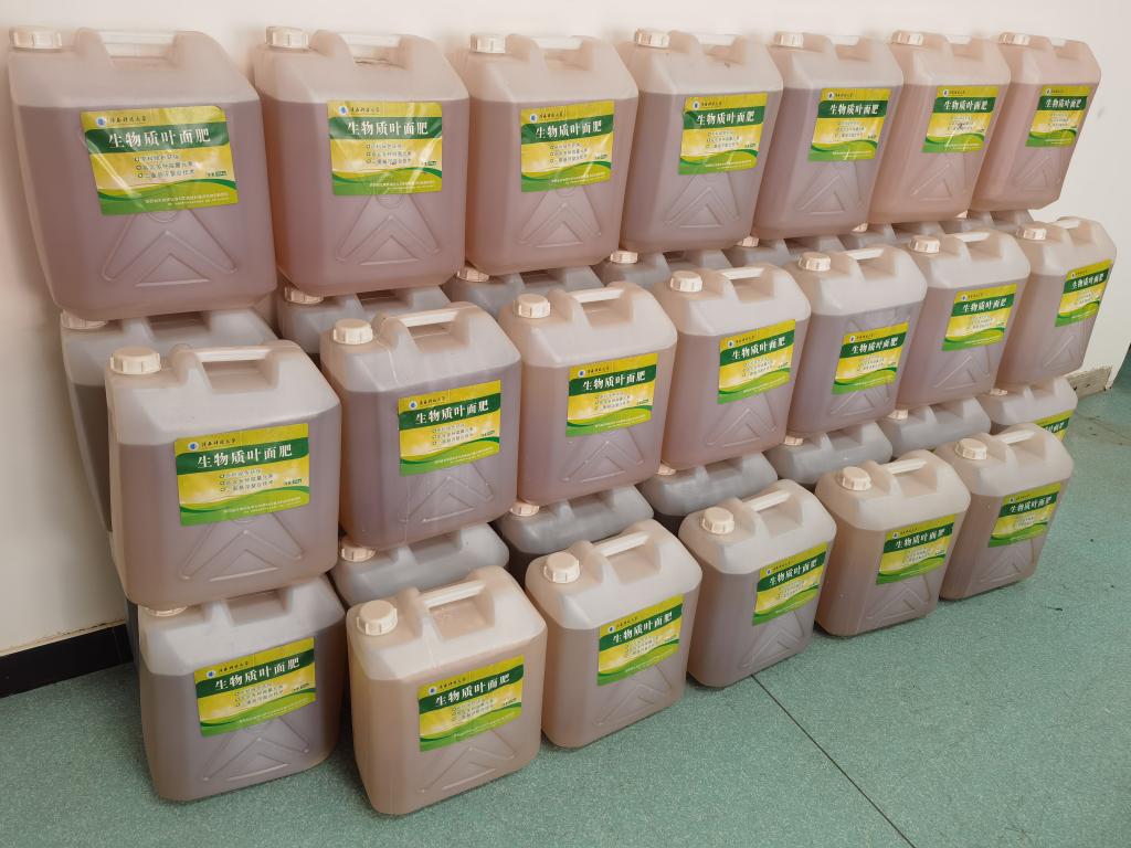 強濤濤教授利用動物膠原、廢棄羊毛等原料開發(fā)了系列生物質(zhì)葉面肥和液體土壤肥,該系列有機肥解決傳統(tǒng)化學肥料長時間、過度的施用導致土壤的酸堿化、鹽堿化、土壤板結(jié),破壞土壤結(jié)構(gòu)與理化性質(zhì)而逐漸喪失栽培能力的問題,系列有機肥所用原料均來源于生物質(zhì)資源,可通過葉面和土壤吸收,進入土壤的有機肥不會對耕地產(chǎn)生不良影響,并且可以有效預防植物缺鐵、缺鋅癥狀的發(fā)生,目前該系列有機肥成功規(guī)?;瘧糜讷J猴桃、中藥材、花卉等植物種植上,產(chǎn)生了良好的應用效果。