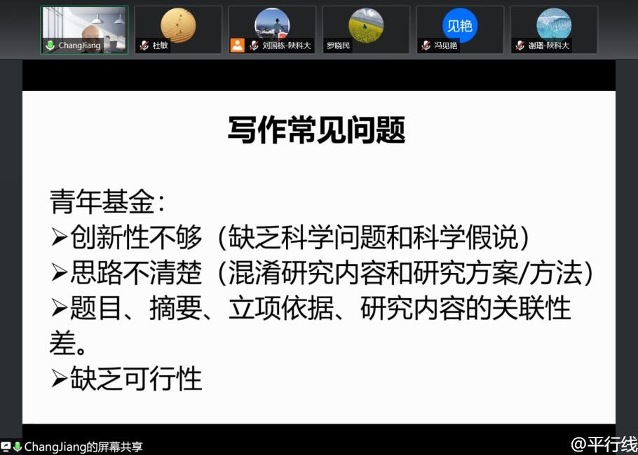 常江研究員的報告圍繞著國家自然科學基金概述、申請書撰寫和常見問題三個方面展開。他指出,國家自然科學基金的選題非常重要,優(yōu)秀的選題是項目申請的立身之本,選題一定要具有科學性、創(chuàng)新性和可行性。在申請書寫作過程中,摘要和研究背景需要反復斟酌,科學問題必須要明確,研究內容條理要清晰,研究方案要具體可行,要注重開展前期預實驗研究,另外要注意寫作的整體邏輯性和前后呼應。