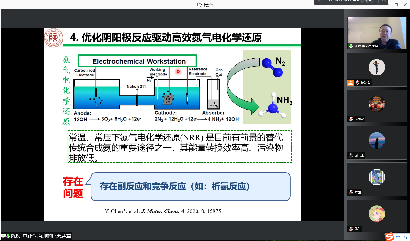 1月17日下午,應(yīng)我校材料科學(xué)與工程學(xué)院、科技處、前沿院邀請(qǐng),陜西師范大學(xué)陳煜做客我?!扒把乜茖W(xué)報(bào)告”,作了題為“優(yōu)化電極反應(yīng)驅(qū)動(dòng)高效能源轉(zhuǎn)化”的線上學(xué)術(shù)報(bào)告。報(bào)告由教務(wù)處處長(zhǎng)楊海波教授主持,材料學(xué)院部分師生參加了此次學(xué)術(shù)報(bào)告會(huì),獲得了積極反響。