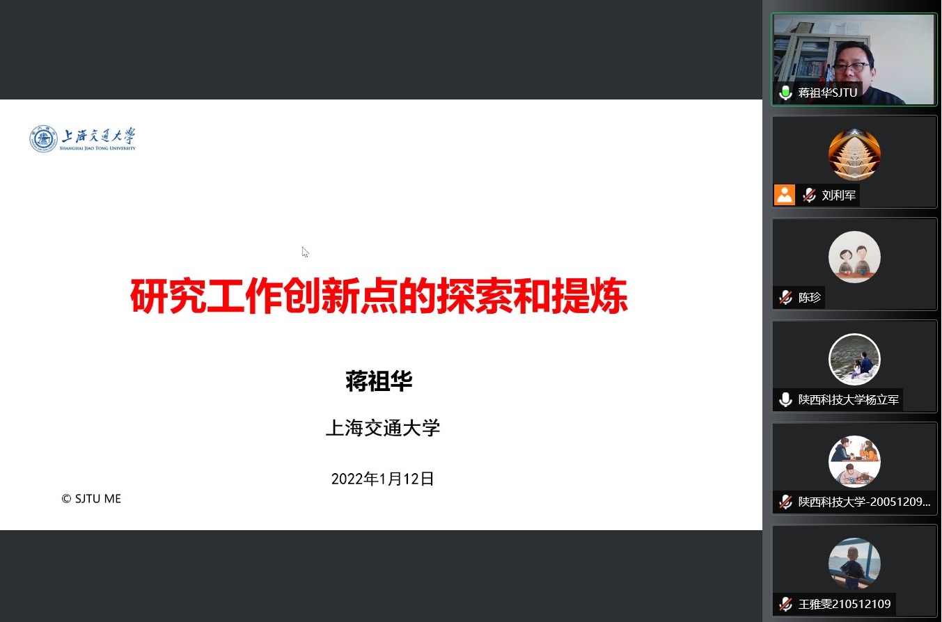 1月12日上午,應(yīng)我校機(jī)電工程學(xué)院邀請,上海交通大學(xué)蔣祖華教授做客我?!扒把乜茖W(xué)報告”,作了題為“研究工作創(chuàng)新點的探索和提煉”的線上學(xué)術(shù)報告。機(jī)電工程學(xué)院教師及研究生230余人參加了此次報告會,報告會由副院長楊立軍主持。