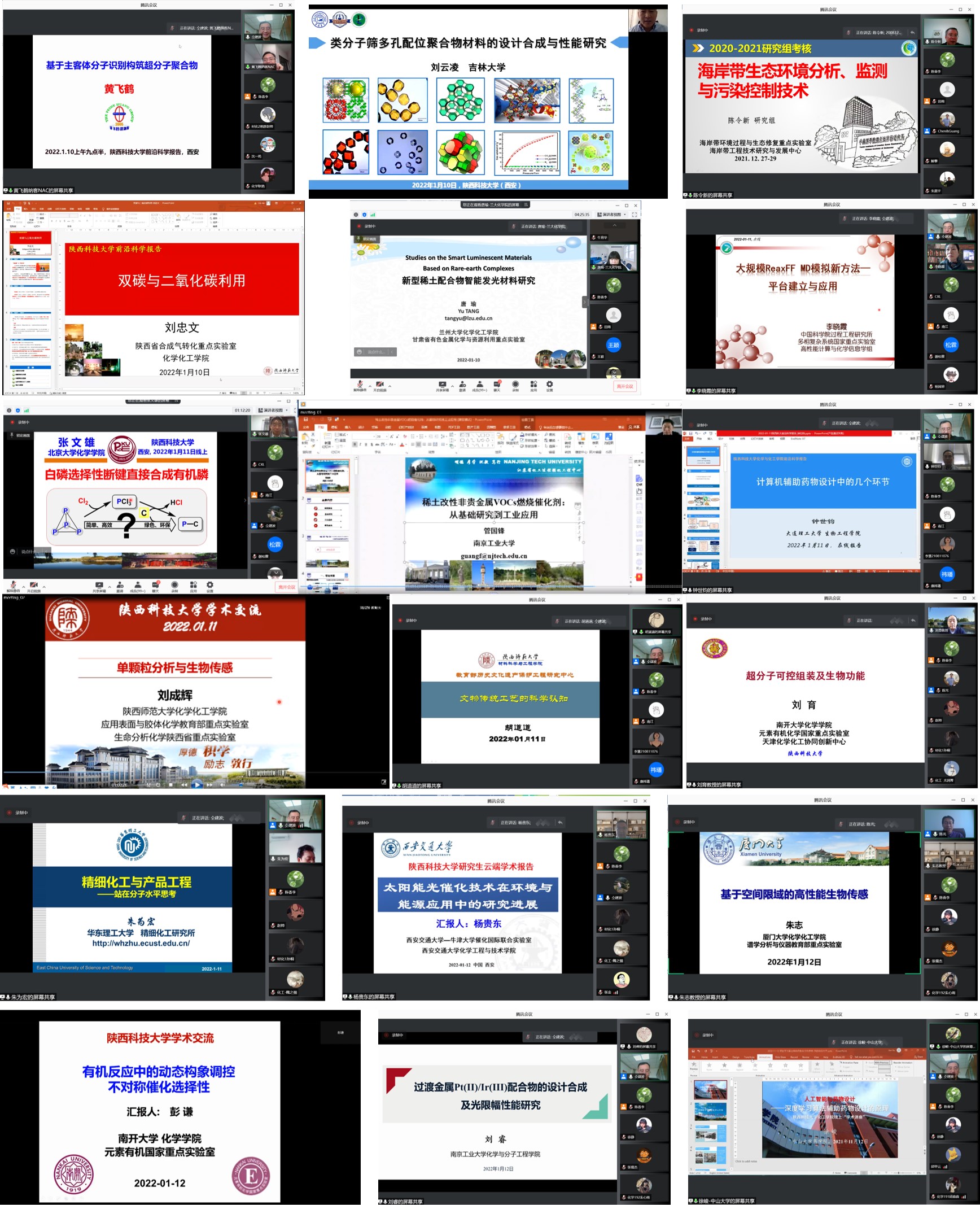 1月10日-1月12日,應(yīng)我校科技處、前沿院及化學(xué)與化工學(xué)院邀請(qǐng),浙江大學(xué)黃飛鶴教授、吉林大學(xué)劉云凌教授、中國科學(xué)院煙臺(tái)海岸所陳令新研究員、陜西師范大學(xué)劉忠文教授、蘭州大學(xué)唐瑜教授、中國科學(xué)院過程工程研究所李曉霞研究員、北京大學(xué)張文雄教授、南京工業(yè)大學(xué)管國鋒教授、大連理工大學(xué)鐘世鈞教授、陜西師范大學(xué)劉成輝教授、陜西師范大學(xué)胡道道教授、南開大學(xué)劉育教授、華東理工大學(xué)朱為宏教授、西安交通大學(xué)楊貴東教授、廈門大學(xué)朱志教授、南開大學(xué)彭謙教授、南京工業(yè)大學(xué)劉睿教授、中山大學(xué)徐峻教授等18位專家做客我校“前沿科學(xué)報(bào)告”,為學(xué)院師生作了線上系列學(xué)術(shù)報(bào)告。報(bào)告會(huì)由化工學(xué)院副院長仝建波教授主持。