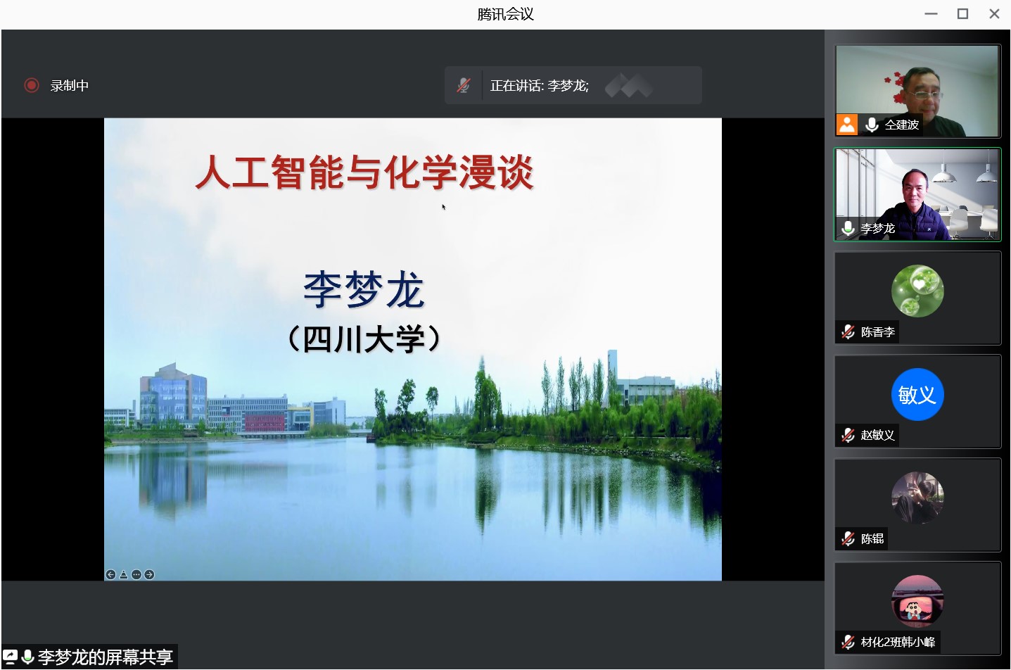 1月6日下午,應我??萍继帯⑶把卦杭盎瘜W與化工學院邀請,四川大學李夢龍教授做客我?!扒把乜茖W報告”,作了題為“人工智能與化學漫談”的報告。報告會由化學與化工學院副院長仝建波主持,學院相關專業(yè)教師、研究生聆聽了此次報告會。