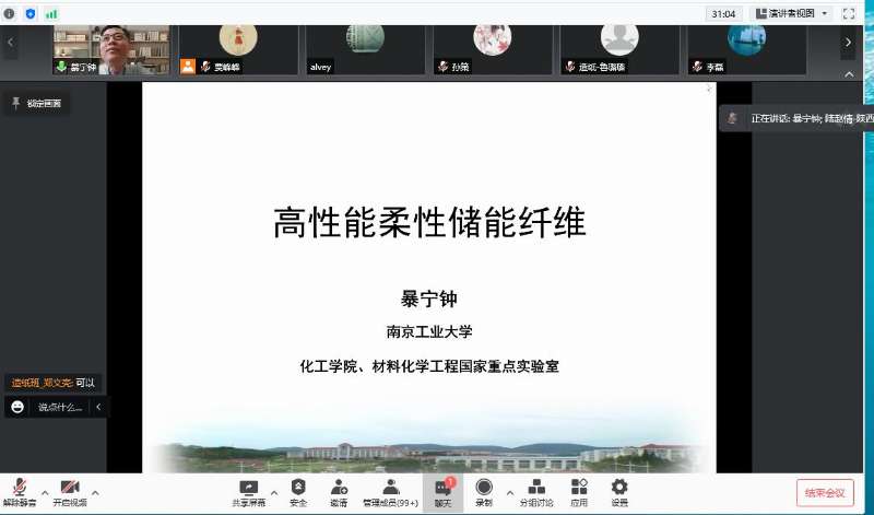 1月3日下午,受我校輕工科學(xué)與工程學(xué)院、科技處及前沿院邀請(qǐng),南京工業(yè)大學(xué)教授暴寧鐘做客我校“前沿科學(xué)報(bào)告”,作了題為“高性能柔性?xún)?chǔ)能纖維”的線上學(xué)術(shù)報(bào)告。輕工學(xué)院部分教師及研究生聆聽(tīng)了本次報(bào)告。報(bào)告由我校研究生院院長(zhǎng)陸趙情主持。