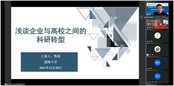 12月28日下午,應(yīng)我校輕工科學與工程學院和研究生院邀請,渤海大學鄂濤教授做客我?!拔囱雽?dǎo)師論壇”,并作了題為“淺談企業(yè)與高校之間的科研轉(zhuǎn)型”的報告。報告由輕工學院院長呂斌教授主持,學院相關(guān)教師和學生參加了本次報告會。受疫情影響,本次報告采取線上會議方式進行。