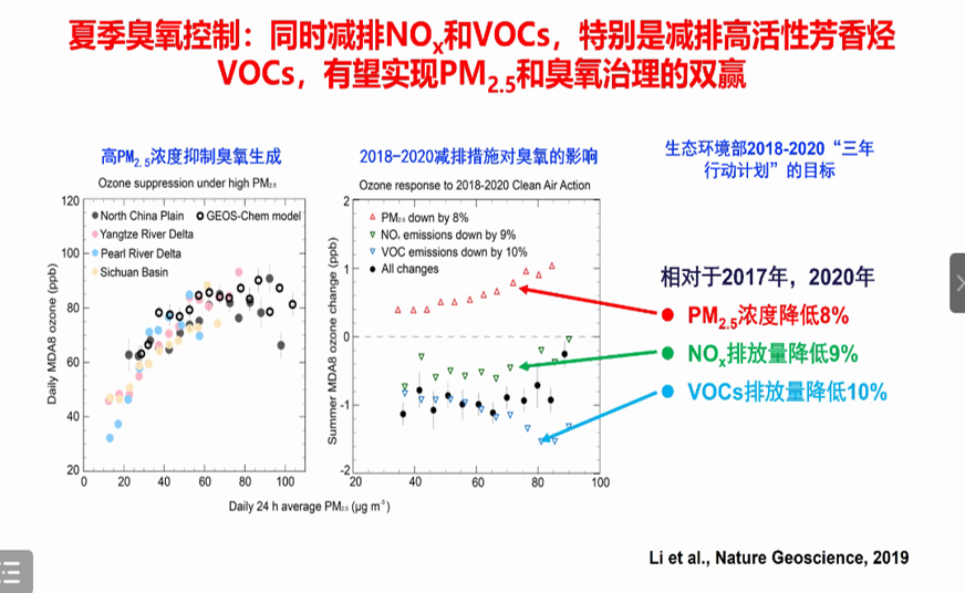 臭氧作為一種主要空氣污染物,會危害人體健康及陸地生態(tài)系統(tǒng),中國正面臨日益嚴重的臭氧污染問題。廖宏教授指出,在我國城市地區(qū)夏季臭氧經(jīng)常成為首要大氣污染物,研究臭氧污染的成因?qū)τ谥贫ㄓ行У臏p排策略非常重要。報告從化學機制和氣象條件兩個方面,詳細解析了近年來導致我國臭氧濃度上升的原因。廖宏教授強調(diào),在當前嚴峻的大氣復合污染形勢下,需要更加有力的措施去控制NOx和VOCs的排放,特別是減排能同時形成臭氧和二次有機氣溶膠的高活性芳香烴VOCs,才能夠更有效地實現(xiàn)霾和臭氧治理的雙贏。