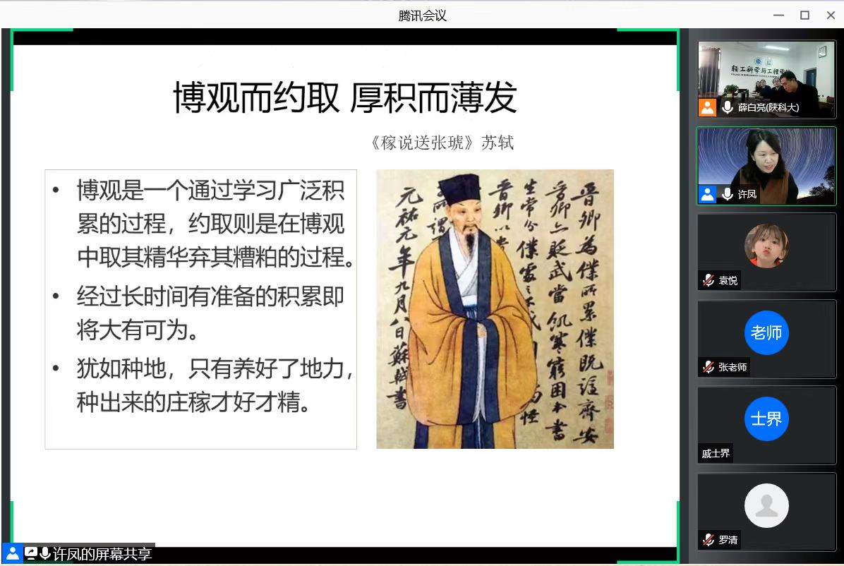 12月22日下午,應我校輕工科學與工程學院、科技處及前沿院邀請,北京林業(yè)大學許鳳教授做客我?!扒把乜茖W報告”,作了題為“博觀而約取,厚積而薄發(fā)”的線上學術報告。報告由輕工學院黨委書記李新平主持,學院部分教師及相關專業(yè)研究生參加了本次報告。