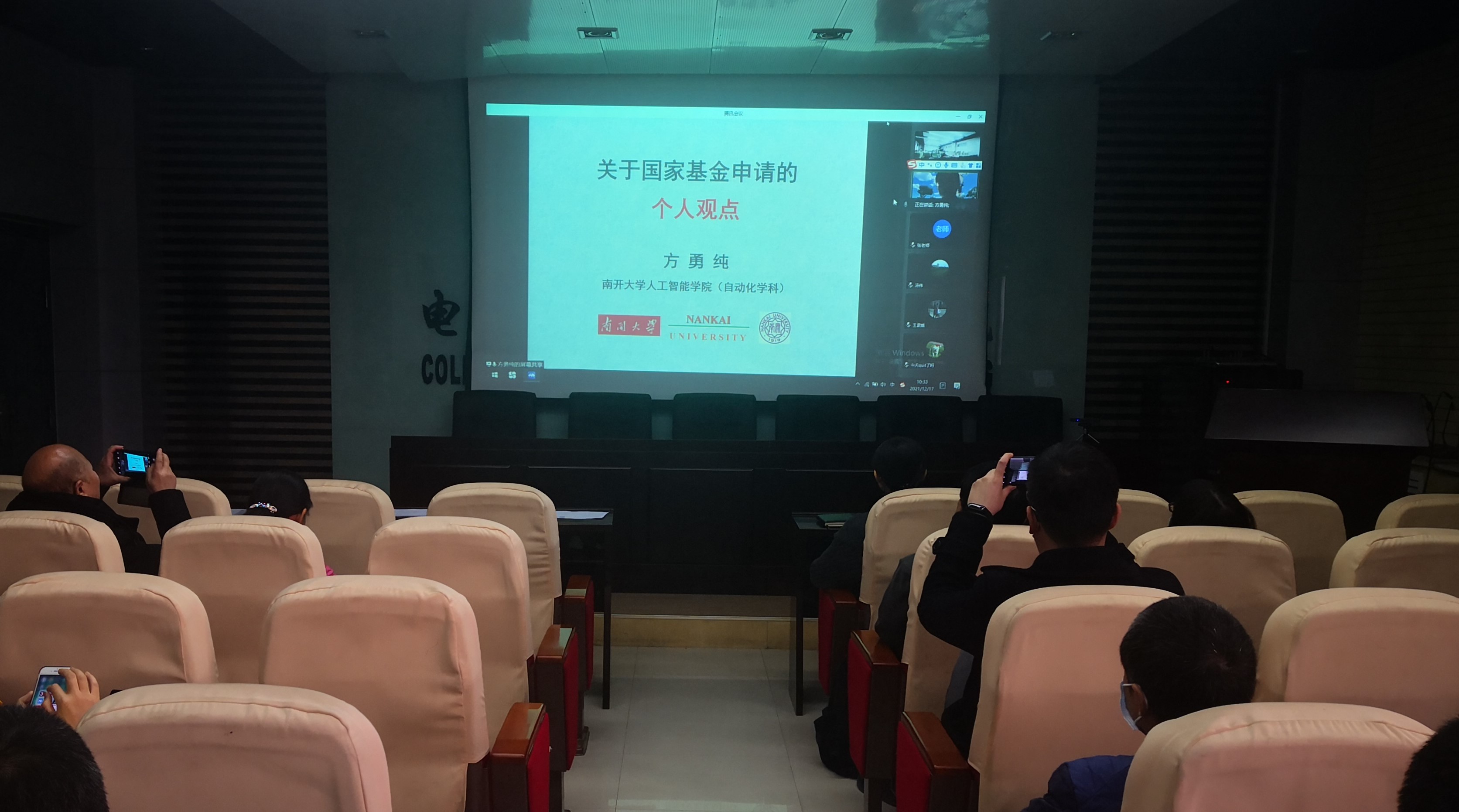 方勇純教授作了“團(tuán)隊(duì)工作介紹與基金申請感想”的學(xué)術(shù)報(bào)告。他首先介紹了團(tuán)隊(duì)近年來在機(jī)器人與非線性控制方面的研究工作及成果。接著,他結(jié)合近年來在基金項(xiàng)目申請和評審方面的心得和經(jīng)驗(yàn),圍繞基金選題、基金撰寫等方面內(nèi)容和各位老師進(jìn)行探討。他指出基金申報(bào)工作應(yīng)重視前期準(zhǔn)備,精心構(gòu)思,剖析自己獨(dú)特性和優(yōu)勢之處;撰寫正文時(shí)應(yīng)把握整體結(jié)構(gòu),明確主線和主要存在問題,反復(fù)修改打磨;面對基金申報(bào)結(jié)果,應(yīng)保持良好心態(tài),聽取評審意見,不斷累積經(jīng)驗(yàn)值。