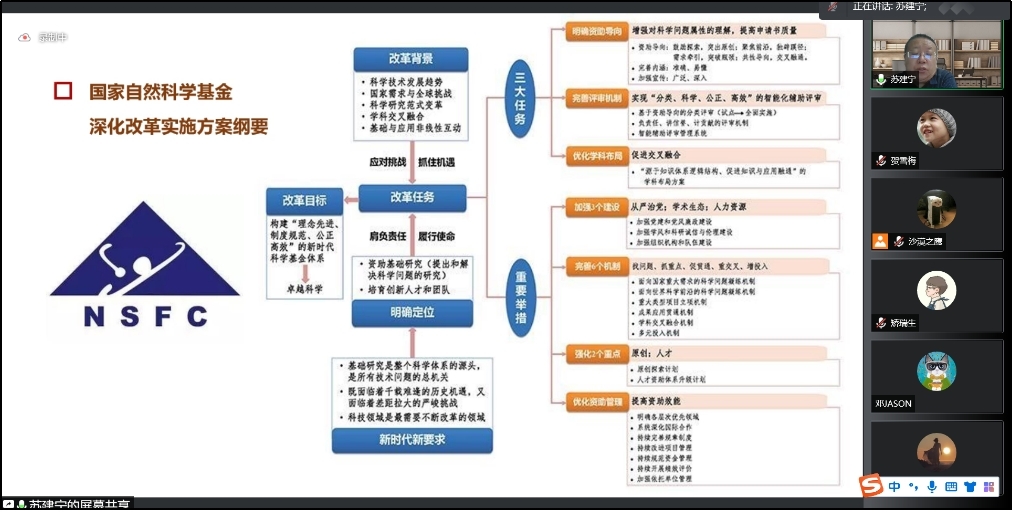 國家自然基金申報是一項重要的工作,選題的科學(xué)性、研究的創(chuàng)新性、成果的轉(zhuǎn)化性代表著國家的科研水平,更是高??蒲心芰Φ募畜w現(xiàn),賀雪梅教授希望大家向蘇教授學(xué)習(xí),挖掘自身的研究專長、凝練研究問題、學(xué)習(xí)研究方法,持之以恒的堅定信念,在基金申報的道路上不斷學(xué)習(xí)、進取、創(chuàng)新。