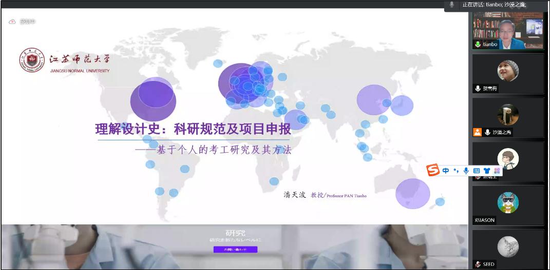 12月14日晚,應(yīng)設(shè)計與藝術(shù)學院邀請,江蘇師范大學潘天波教授云端做客我校“前沿科學報告”,作了題為“設(shè)計史論科研規(guī)范及課題申報”的學術(shù)報告。報告會由設(shè)藝學院副院長賀雪梅教授主持,學院全體教師及部分研究生聆聽了此次精彩分享。