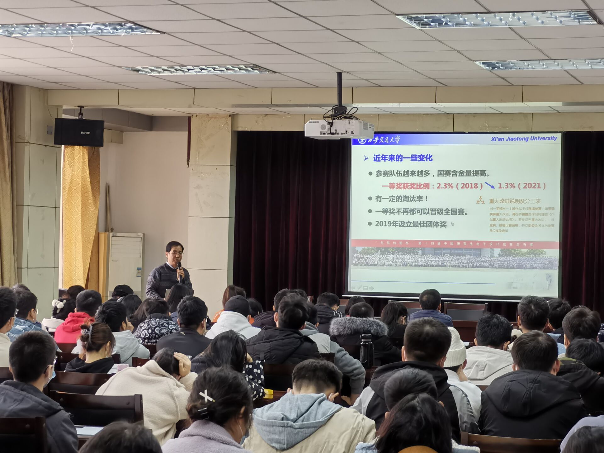 為切實提升我校研究生創(chuàng)新實踐能力,活躍科研氛圍,12月15日,應機電學院邀請,全國研究生電子設計競賽(研電賽)評審專家——西安交通大學吳勝利教授做客我校“未央導師論壇”,并作了題為“中國研究生電子設計競賽分析”的報告。報告會由機電學院副院長楊立軍主持,機電學院部分教師、研究生參加了報告會。