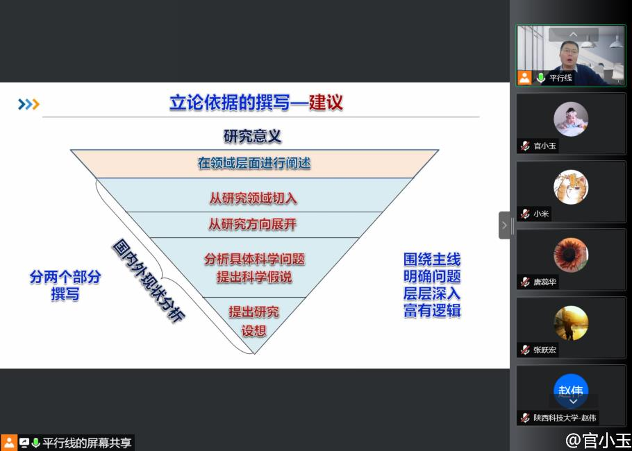 2月17日上午,受我校輕工科學(xué)與工程學(xué)院、科技處、前沿院邀請(qǐng),空軍軍醫(yī)大學(xué)張偉教授做客我?!扒把乜茖W(xué)報(bào)告”,作了題為“國家自然科學(xué)基金撰寫技巧及注意事項(xiàng)”的報(bào)告。報(bào)告會(huì)由輕工學(xué)院副院長劉國棟主持,線上線下同時(shí)進(jìn)行,輕工學(xué)院部分專任教師參加了本次報(bào)告會(huì)。
