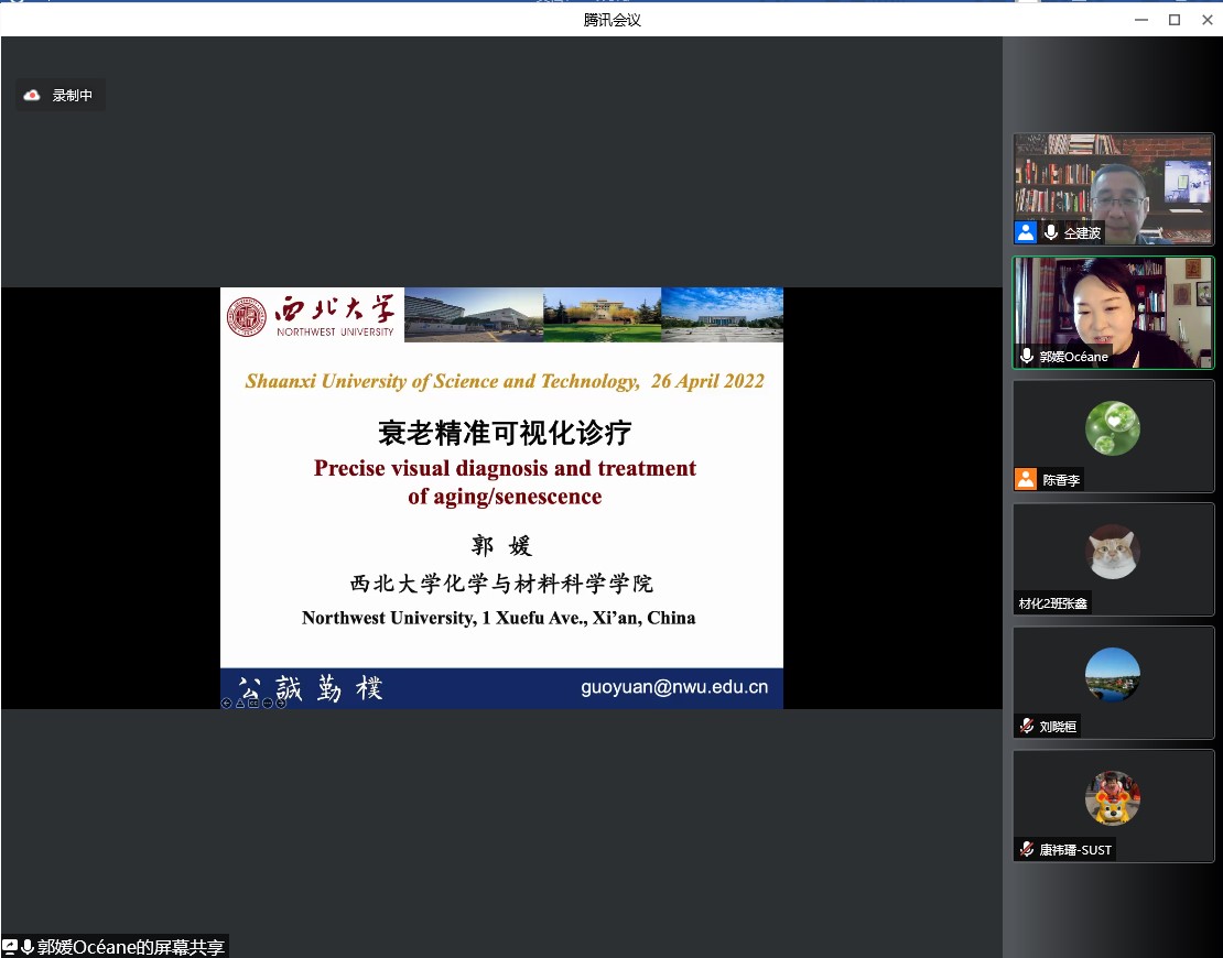 4月26日,應(yīng)我??萍继?、前沿院及化學(xué)與化工學(xué)院邀請,西北大學(xué)郭媛教授和吉林大學(xué)鄭清川教授做客我?!扒把乜茖W(xué)報告”,作了題為“衰老精準可視化診療”和“計算機模擬在復(fù)雜生物體系研究中的應(yīng)用”的報告。報告會由化學(xué)與化工學(xué)院副院長仝建波主持,學(xué)院相關(guān)專業(yè)教師、研究生聆聽了此次報告會。