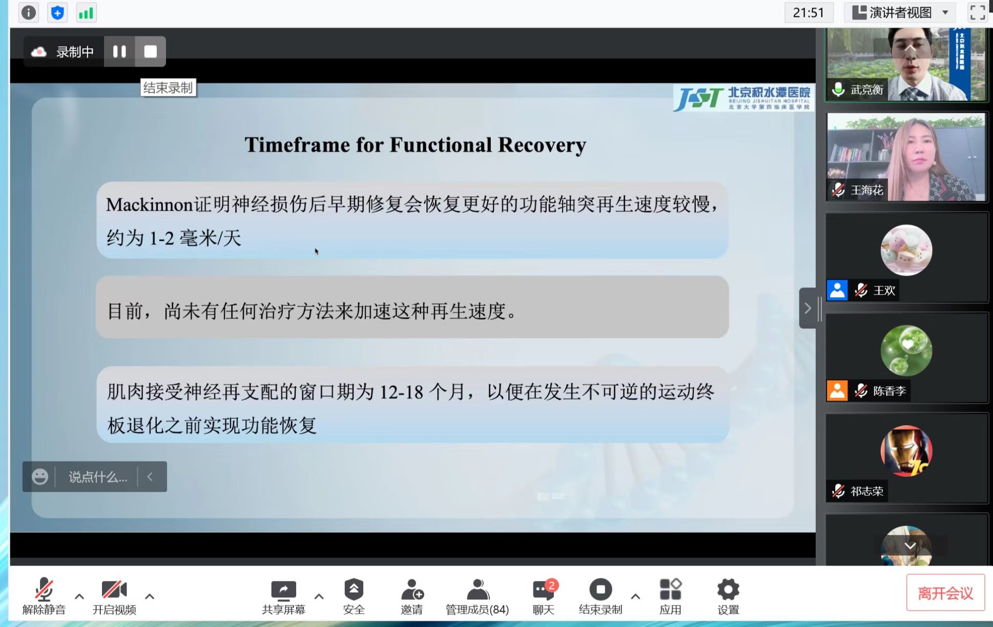 武競(jìng)衡醫(yī)師針對(duì)周圍神經(jīng)解剖、神經(jīng)的生理、神經(jīng)損失的分級(jí)、神經(jīng)損失的修復(fù)、神經(jīng)修復(fù)的結(jié)果以及周圍神經(jīng)損失修復(fù)的研究六個(gè)方面進(jìn)行了詳細(xì)的介紹與講解,并總結(jié)了目前臨床上關(guān)于神經(jīng)修復(fù)的一些技術(shù)手段及面臨的挑戰(zhàn)。