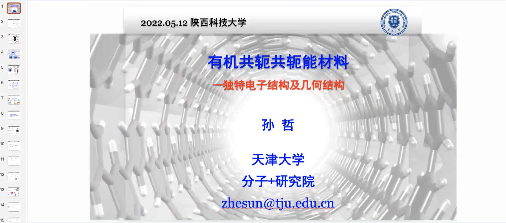 孫哲教授從傳統(tǒng)的有機(jī)共軛結(jié)構(gòu)與應(yīng)用分析出發(fā),介紹了共軛體系電子結(jié)構(gòu)和幾何結(jié)構(gòu)的相關(guān)性。先后介紹了課題組近年來(lái)圍繞雙線(xiàn)態(tài)單自由基、單線(xiàn)態(tài)雙自由基與碳納米環(huán)/帶/管/籠三個(gè)方面開(kāi)展的系列工作,介紹了所合成有機(jī)共軛材料在響應(yīng)材料電荷、自旋傳輸有機(jī)導(dǎo)體、多孔材料超分子主客體手性材料等方面的獨(dú)特應(yīng)用。