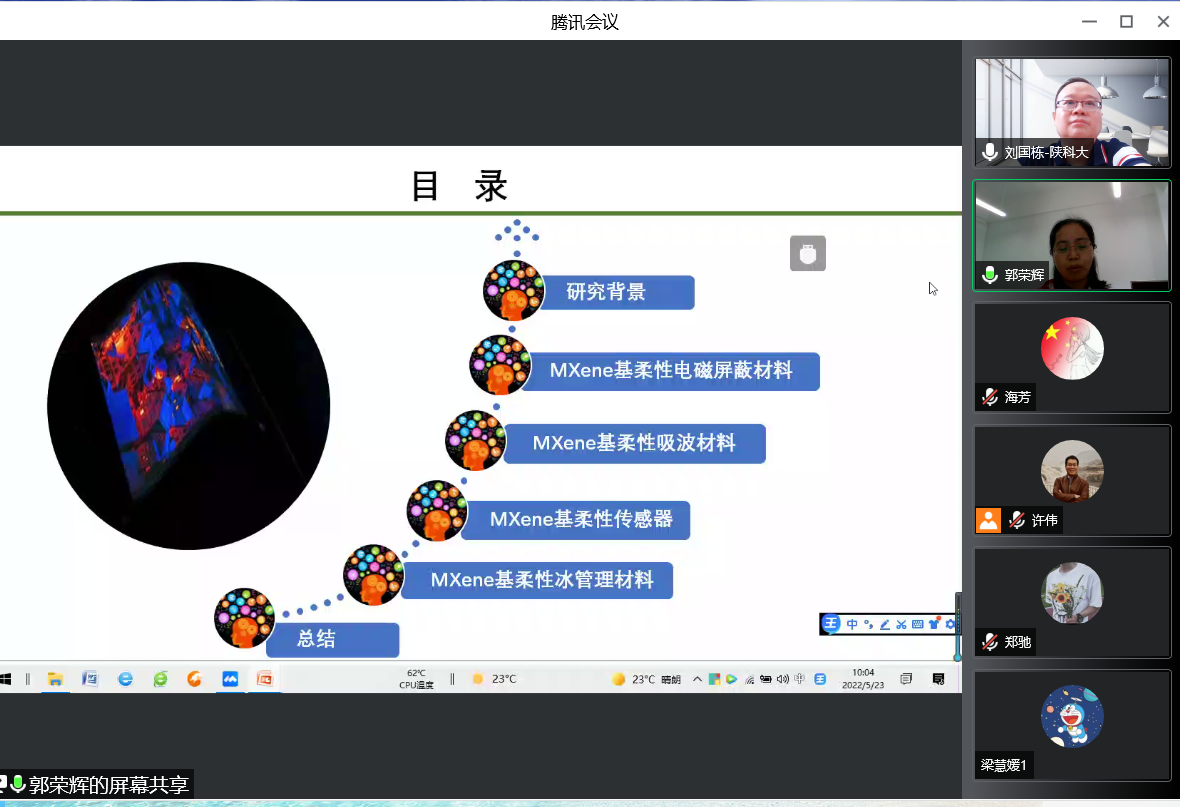5月23日上午,應(yīng)我校輕工科學(xué)與工程學(xué)院、科技處及前沿院邀請,四川大學(xué)郭榮輝教授做客我?!扒把乜茖W(xué)報告”,作了題為“MXene基柔性功能材料”的線上報告。報告會由輕工學(xué)院副院長劉國棟主持,學(xué)院相關(guān)專業(yè)教師、研究生參加了此次報告會。