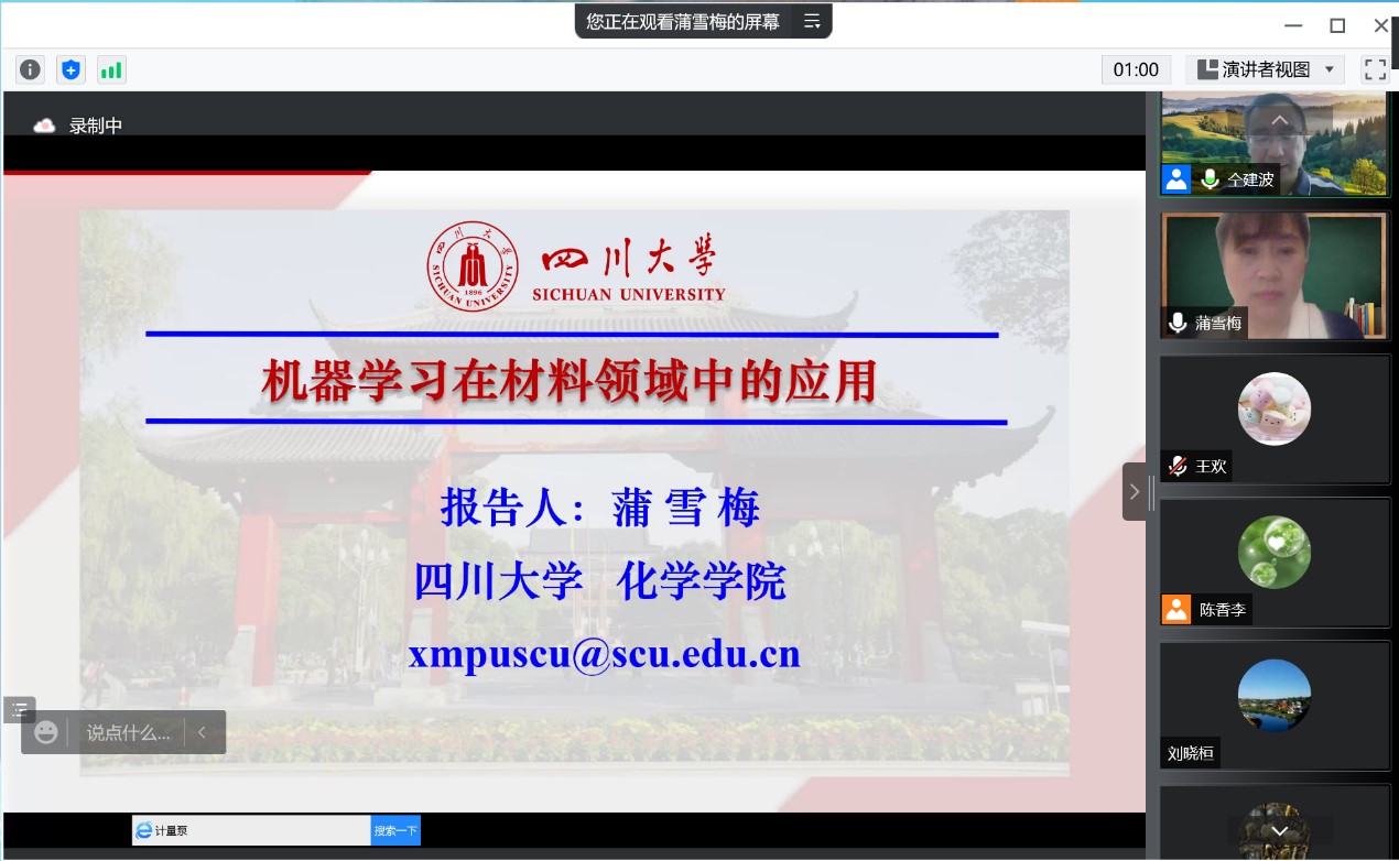 5月19日,應(yīng)我??萍继?、前沿院及化學(xué)與化工學(xué)院邀請,四川大學(xué)蒲雪梅教授和西北大學(xué)/西安石油大學(xué)李華教授做客我?!扒把乜茖W(xué)報告”,分別作了題為“機器學(xué)習(xí)在材料領(lǐng)域中的應(yīng)用”和“基于人工智能的化學(xué)測量學(xué)研究新范式芻議”的報告。報告會由化工學(xué)院副院長仝建波主持,學(xué)院相關(guān)專業(yè)教師、研究生聆聽了此次報告會。