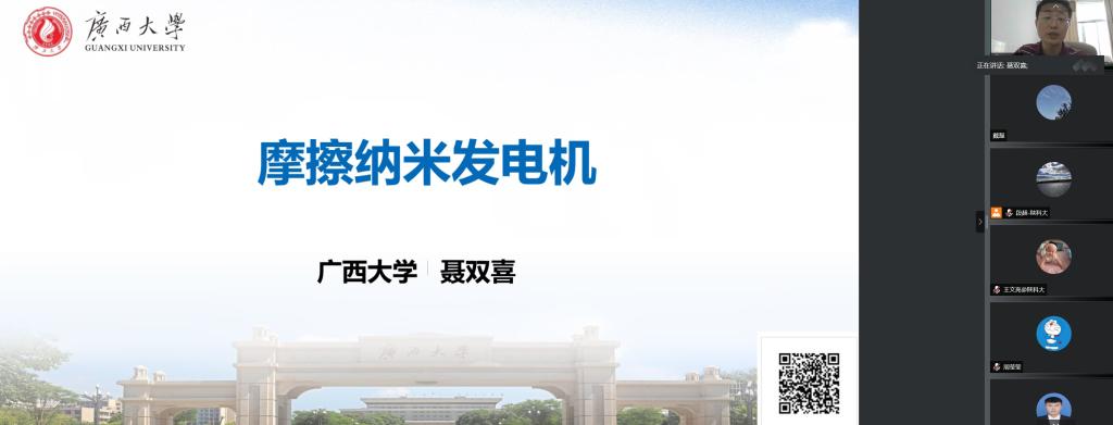 5月31日下午,應(yīng)我校輕工科學與工程學院、科技處及前沿院邀請,廣西大學聶雙喜教授做客我?!扒把乜茖W報告”,進行了以“摩擦納米發(fā)電機”為題的線上學術(shù)報告。報告會由輕工學院副院長劉國棟主持,學院及相關(guān)專業(yè)教師、研究生參加了此次報告會。