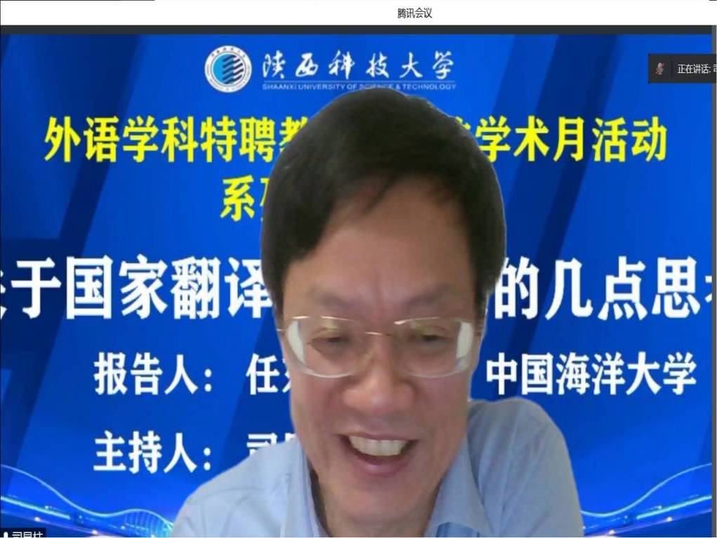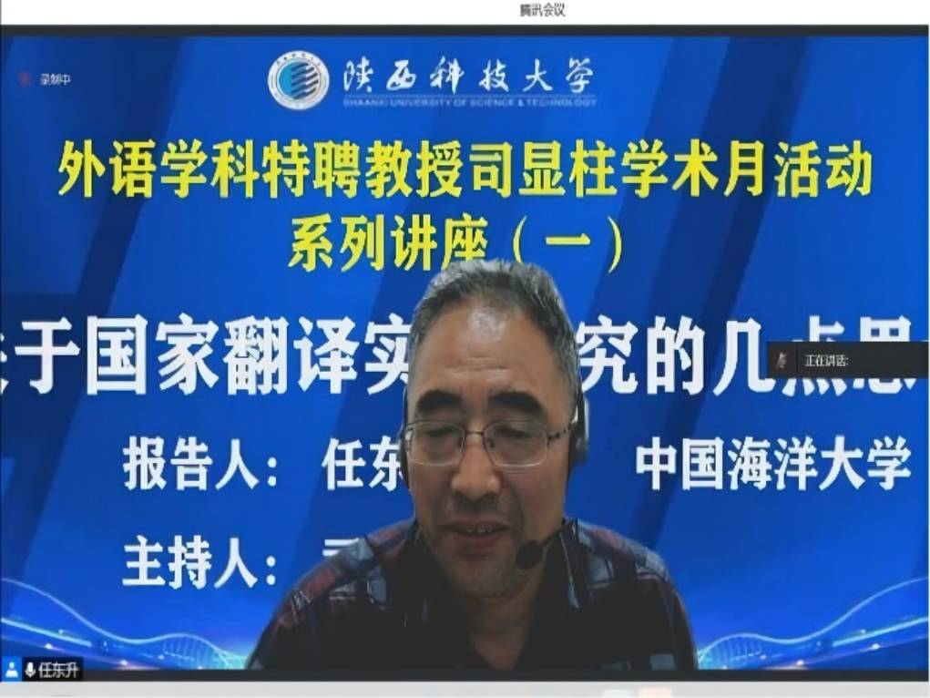 6月9日晚,中國海洋大學(xué)任東升教授應(yīng)邀做客我?!扒把貙W(xué)科報告”,作為我校文理學(xué)院外語學(xué)科特聘教授司顯柱學(xué)術(shù)月活動系列講座首位開講嘉賓,做了題為“關(guān)于國家翻譯實踐研究的幾點(diǎn)思考”的線上報告。報告由司顯柱教授主持,文理學(xué)院師生150余人聆聽了此次報告。文理學(xué)院6月組織開展的外語學(xué)科特聘教授司顯柱學(xué)術(shù)活動系列講座,旨在充分發(fā)揮我校特聘教授學(xué)術(shù)引領(lǐng)和資源共享作用,推動我校外語學(xué)科內(nèi)涵發(fā)展。