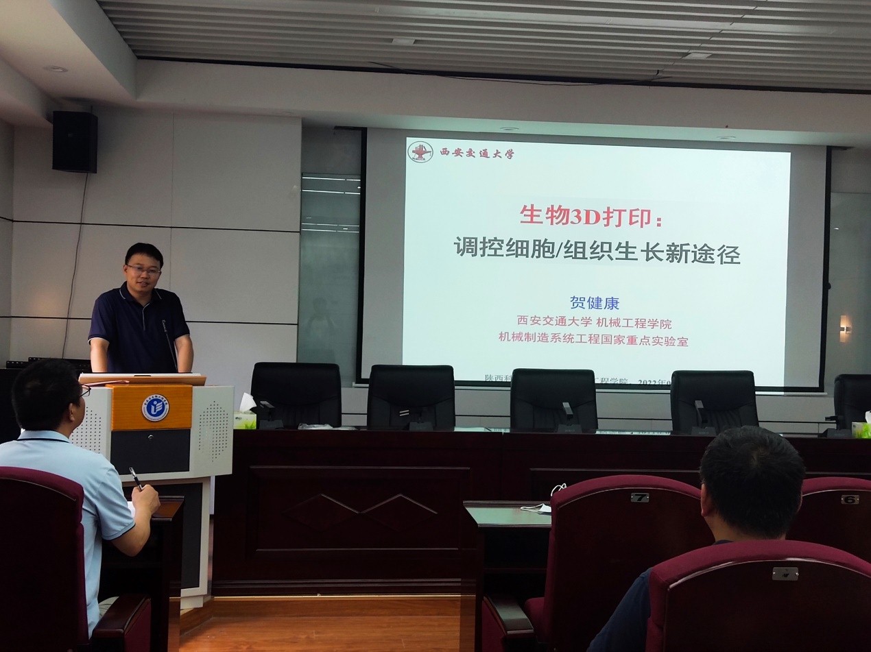 7月5日下午,西安交通大學機械工程學院教授賀健康應邀做客我?!?span style="text-indent: 28px;">前沿科學報告”,以“生物3D打?。赫{控細胞/組織生長新途徑”為題進行學術報告,報告在食品與生物工程學院學術報告廳進行,食品學院部分教師和研究生代表參加了本次報告會,報告由食品學院院長助理高翔主持。