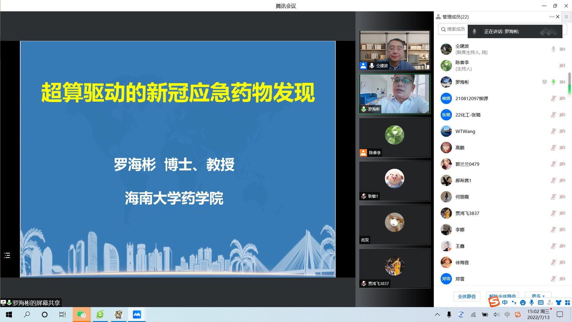 羅海彬教授針對新冠病毒MPro等重要靶點,應(yīng)用國際領(lǐng)先的藥/靶親和力精準(zhǔn)預(yù)測方法,實現(xiàn)新冠應(yīng)急藥物的快速篩選和精準(zhǔn)預(yù)測,并完成100多例臨床試驗,臨床效果良好,具有重要的現(xiàn)實意義。重點介紹了在天河新一代超級計算機上完成了“基于自由能微擾方法的大規(guī)模新冠藥物虛擬篩選”這一杰出研究成果。