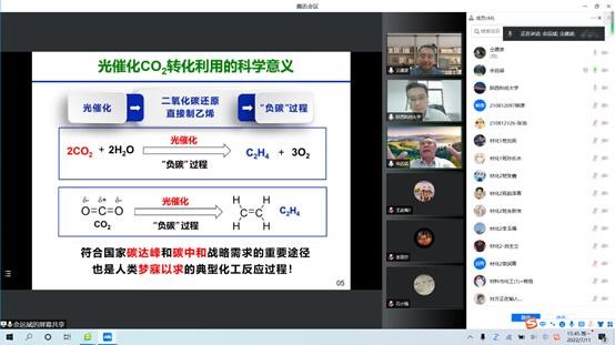 佘遠(yuǎn)斌教授從金屬卟啉類化合物的結(jié)構(gòu)具有極強的可設(shè)計性和調(diào)控性的背景出發(fā),介紹了其作為血紅素、葉綠素的母體或模擬物以及催化材料的應(yīng)用前景。簡要介紹了金屬卟啉類催化材料的設(shè)計、合成,以及利用其催化氧氣選擇氧化環(huán)己烷、各類芳烴側(cè)鏈綠色合成醇、醛、酮、酸等各類中間體或從產(chǎn)品。重點介紹了利用其構(gòu)筑人工光合作用催化體系,通過太陽光將CO2與水反應(yīng)直接生成乙烯,以及將廢鹽與二氧化碳作用直接制備純堿和小蘇打。