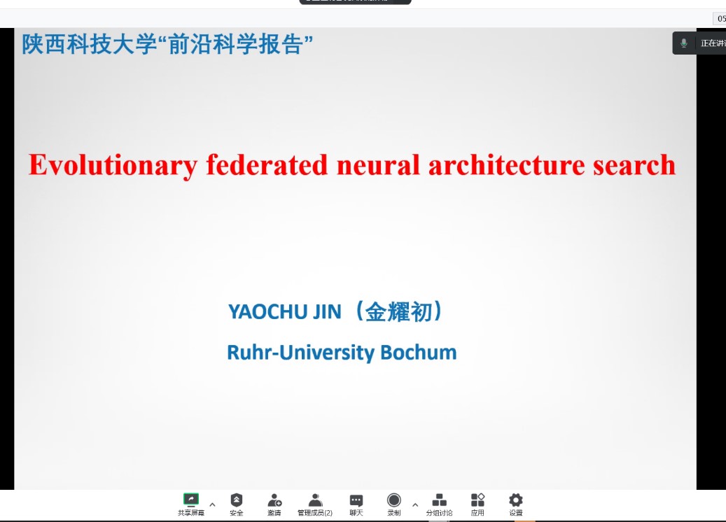 9月22日,應(yīng)科技處、前沿院與電子信息與人工智能學(xué)院邀請,金耀初教授做客我校“前沿科學(xué)報告”,作了題為“Evolutionary federated neural architecture search”的學(xué)術(shù)報告。本次報告會由電智學(xué)院副院長雷濤主持,學(xué)院相關(guān)專業(yè)教師和研究生聆聽了此次報告會,因疫情影響,本次報告采取線上會議的方式進(jìn)行。