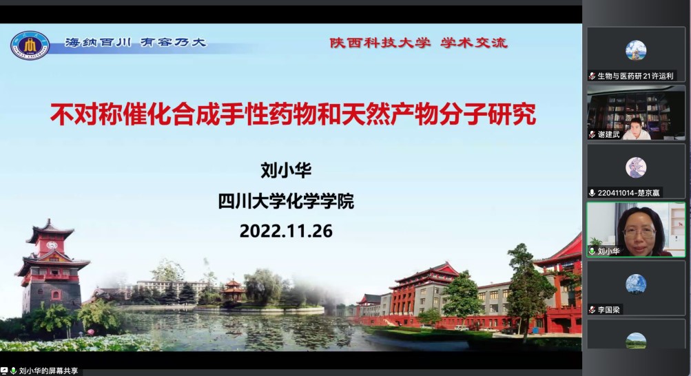 11月26日上午,應我校生物與醫(yī)藥學院和科技處的邀請,四川大學劉小華教授、武漢大學王春江教授應邀做客我?!扒把乜茖W報告”,分別做了題為“不對稱催化合成手性藥物和天然產(chǎn)物分子研究”“雙金屬協(xié)同催化構(gòu)建手性α-氨基酸及雜環(huán)分子”的線上學術(shù)報告。報告會由生物與醫(yī)藥學院副院長(主持工作)李國梁教授主持,生物與醫(yī)藥學院部分教師和研究生代表參加報告會。