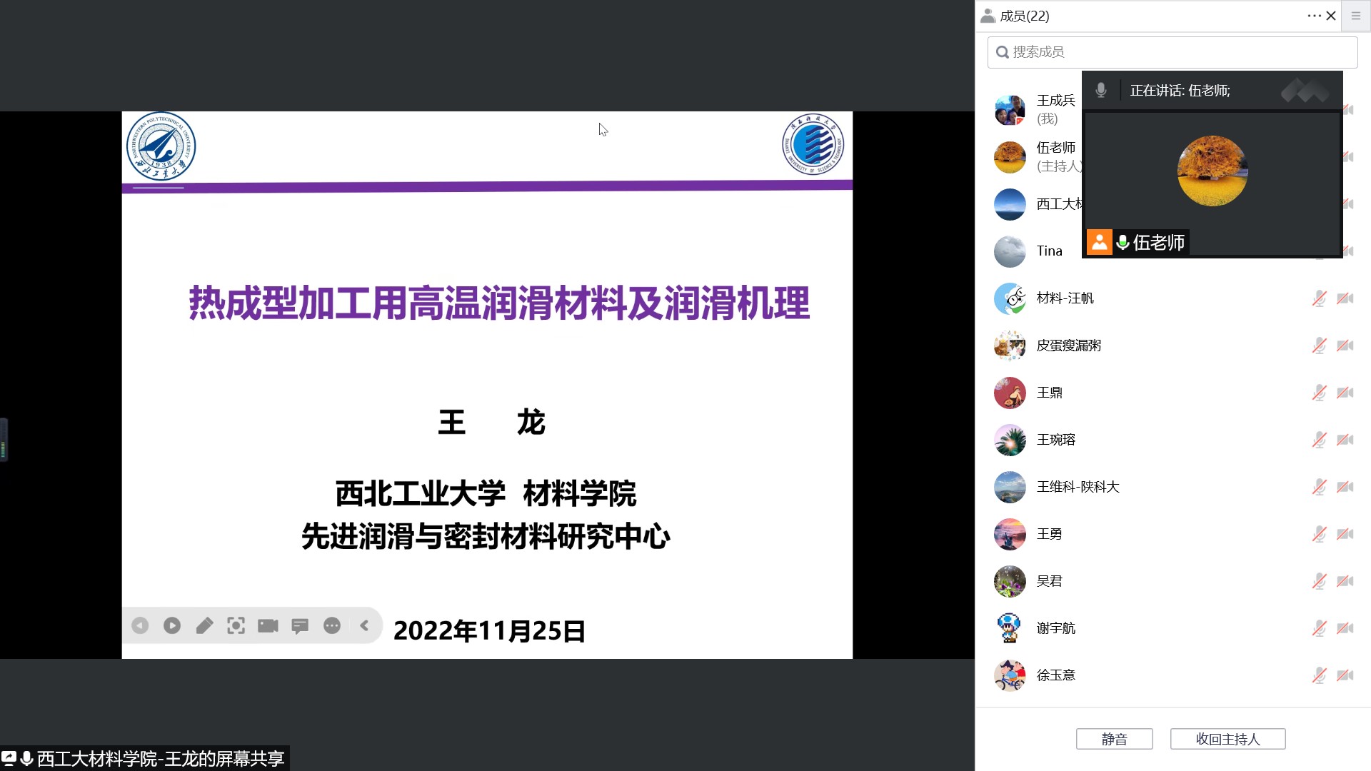 近日,應(yīng)我校材料科學(xué)與工程學(xué)院、科技處及前沿院邀請,西北工業(yè)大學(xué)王龍教授作了題為“熱成型加工用高溫潤滑材料及潤滑機理”的“前沿科學(xué)報告”。該報告由材料學(xué)院伍媛婷教授主持,學(xué)院相關(guān)領(lǐng)域教師和研究生參加了此次報告會。