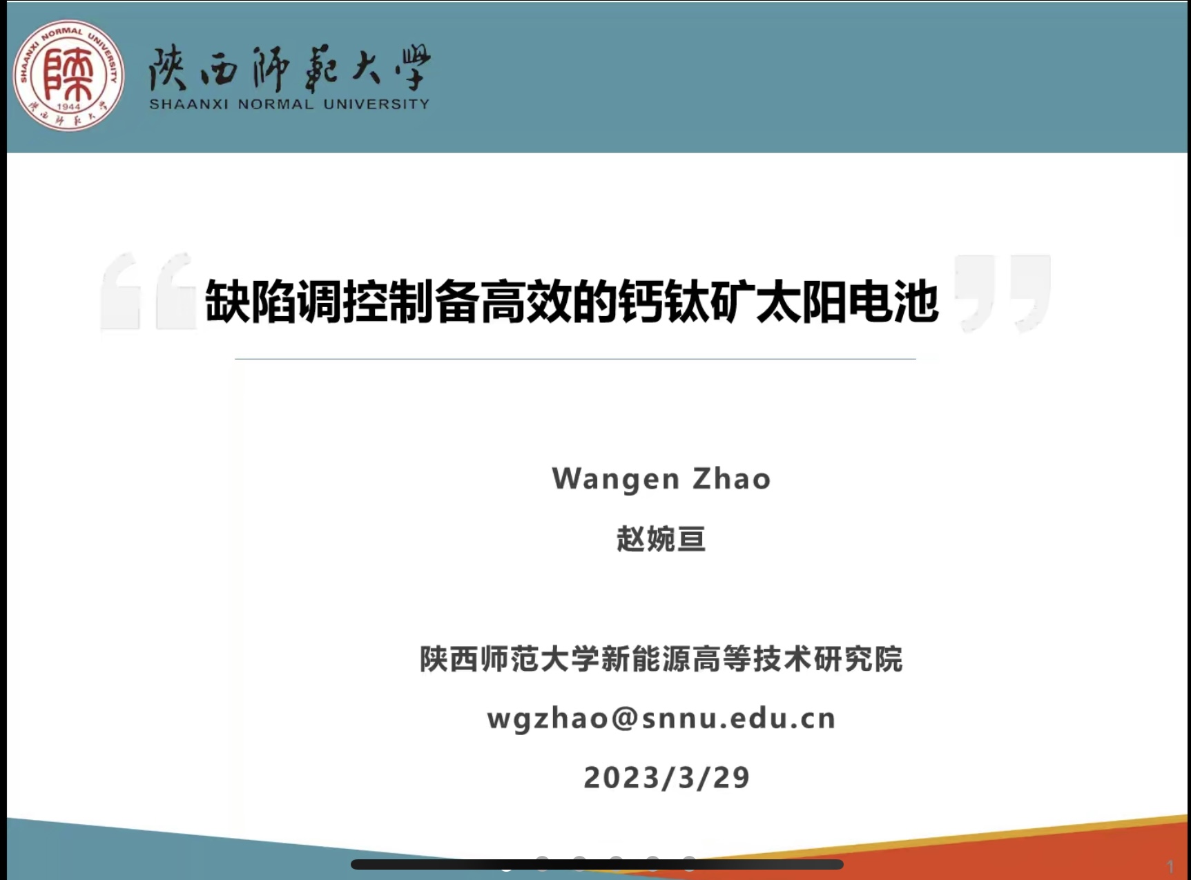 報告會后,趙婉亙老師與參會師生就鈣鈦礦材料缺陷測試方法差異分析和對器件長期穩(wěn)定性等相關(guān)問題進行了深入交流,并表達了后期開展交流與合作的愿望,與會師生受益匪淺。