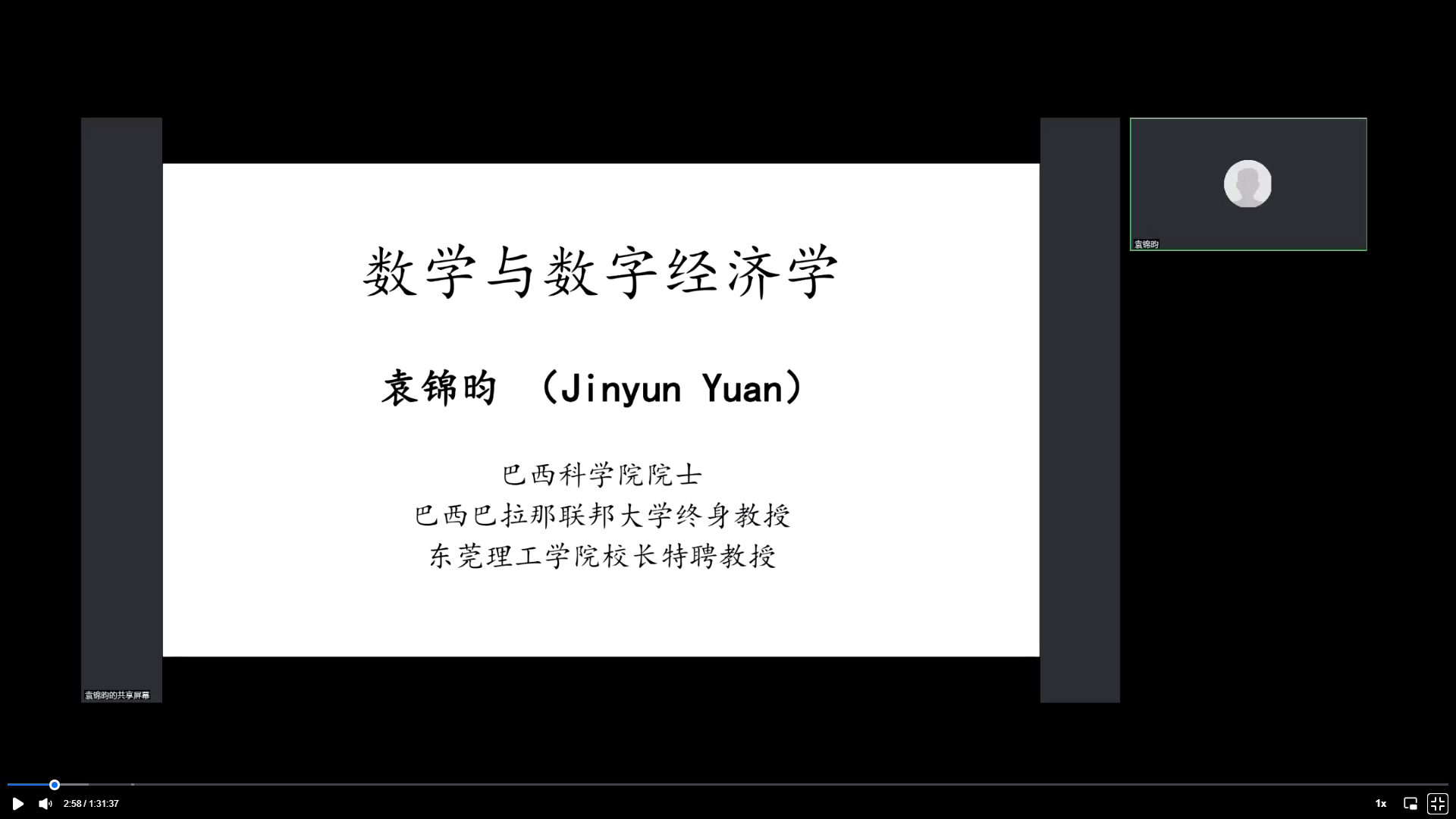 3月29日下午,應(yīng)數(shù)學(xué)與數(shù)據(jù)科學(xué)學(xué)院的邀請,巴西科學(xué)院院士、巴西巴拉那聯(lián)邦大學(xué)終身教授、東莞理工學(xué)院校長特聘教授袁錦昀做客我?!扒把乜茖W(xué)報(bào)告”,做了題為“數(shù)學(xué)與數(shù)字經(jīng)濟(jì)學(xué)”的學(xué)術(shù)報(bào)告。報(bào)告會由數(shù)學(xué)學(xué)院院長李劍教授主持,相關(guān)專業(yè)教師和研究生參加了此次學(xué)術(shù)報(bào)告。