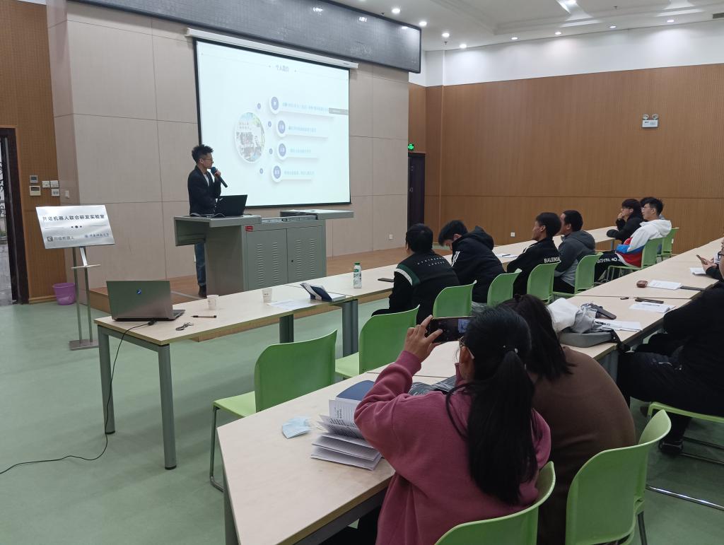 作為機(jī)器人工程專業(yè)特聘企業(yè)導(dǎo)師,兩位企業(yè)導(dǎo)師分別從機(jī)器人教育、創(chuàng)新創(chuàng)業(yè)兩個(gè)維度進(jìn)行了分享。賈敏面向未來智慧工廠與智慧城市的新特點(diǎn)和新需求,結(jié)合桌面機(jī)器人和相關(guān)AI技術(shù)在美國相關(guān)大學(xué)的研究成果,通過大量數(shù)據(jù),系統(tǒng)闡述了機(jī)器人創(chuàng)新設(shè)計(jì)、數(shù)字孿生、機(jī)器視覺、物聯(lián)網(wǎng)等專業(yè)課程設(shè)計(jì)與教學(xué)實(shí)踐,并展望了未來新工科發(fā)展前景。高鵬在線下為同學(xué)們做了創(chuàng)新創(chuàng)業(yè)方面的講座,從個(gè)人的成長經(jīng)歷出發(fā),介紹了開塔機(jī)器人研發(fā)與市場開發(fā)的歷程,鼓勵(lì)同學(xué)們提升遠(yuǎn)見力、創(chuàng)新力、執(zhí)行力、學(xué)習(xí)力和共情力。兩場報(bào)告持續(xù)了三個(gè)小時(shí),拓展了學(xué)生的國際視野,激發(fā)了學(xué)生創(chuàng)新創(chuàng)業(yè)的激情。