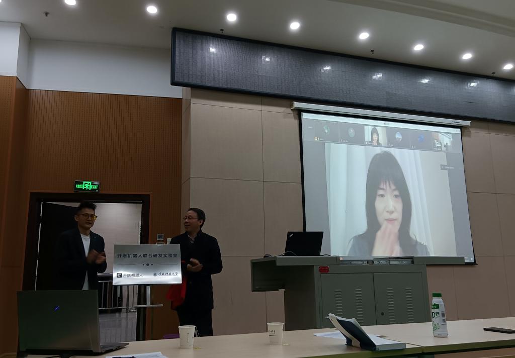 在報(bào)告會(huì)上,陜西科技大學(xué)與開塔機(jī)器人聯(lián)合掛牌成立“開塔機(jī)器人聯(lián)合研發(fā)實(shí)驗(yàn)室”,開塔機(jī)器人與機(jī)器人工程專業(yè)攜手,在校企聯(lián)合培養(yǎng)、實(shí)習(xí)基地、以及面向教育領(lǐng)域的機(jī)器人系統(tǒng)集成與課程開發(fā)等方面進(jìn)行全面合作。