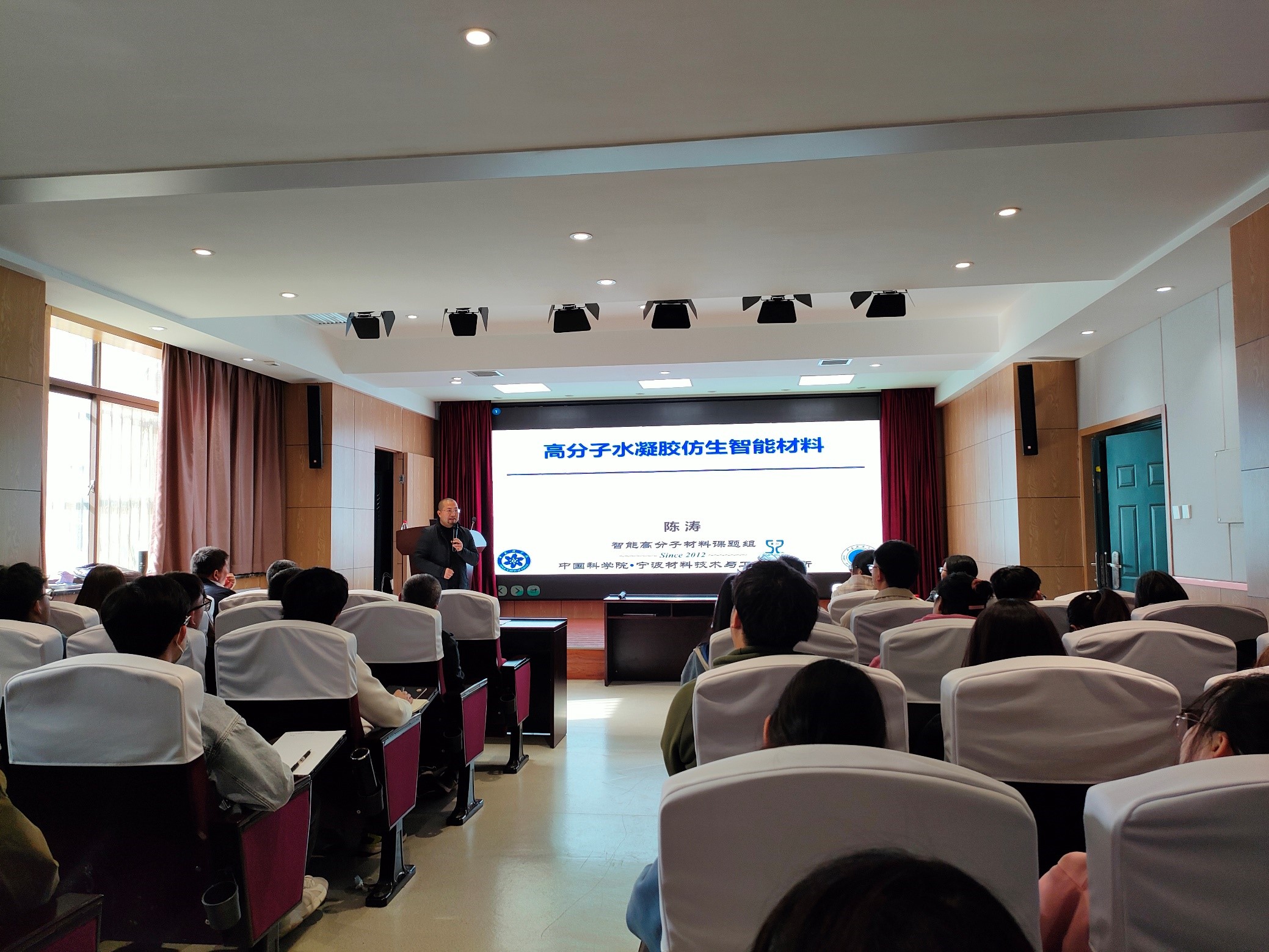 4月7日下午,應(yīng)我校輕工科學(xué)與工程學(xué)院(柔性電子學(xué)院)、科技處及前沿院邀請,中國科學(xué)院寧波材料技術(shù)與工程研究所陳濤研究員做客我?!扒把乜茖W(xué)報告”,作了題為“高分子水凝膠仿生智能材料”的學(xué)術(shù)報告。報告會由輕工學(xué)院院長呂斌主持,學(xué)院相關(guān)專業(yè)教師、研究生參加了此次報告會。