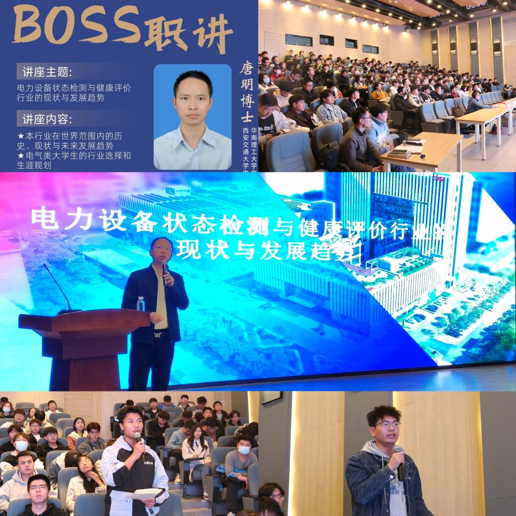 報(bào)告會(huì)上,唐明做了主題為《電力設(shè)備狀態(tài)檢測(cè)與健康評(píng)價(jià)行業(yè)的現(xiàn)狀與發(fā)展趨勢(shì)》的報(bào)告,梳理了電力設(shè)備檢測(cè)與健康狀態(tài)評(píng)價(jià)行業(yè)在世界范圍內(nèi)的歷史、現(xiàn)狀與未來的發(fā)展趨勢(shì),重點(diǎn)探討了其中存在的科學(xué)問題、技術(shù)問題與工程問題,并就“如何把自身發(fā)展和行業(yè)前景相結(jié)合,有趣的規(guī)劃職業(yè)生涯”給出合理化建議。講座深入淺出,內(nèi)容詳實(shí),現(xiàn)場(chǎng)交流環(huán)節(jié)氣氛熱烈。唐明以自己的學(xué)術(shù)成長(zhǎng)道路和行業(yè)創(chuàng)新實(shí)踐勉勵(lì)同學(xué)們要夯實(shí)專業(yè)基礎(chǔ)、積極思考、自信自強(qiáng),將電氣行業(yè)的發(fā)展與個(gè)人理想緊密結(jié)合。