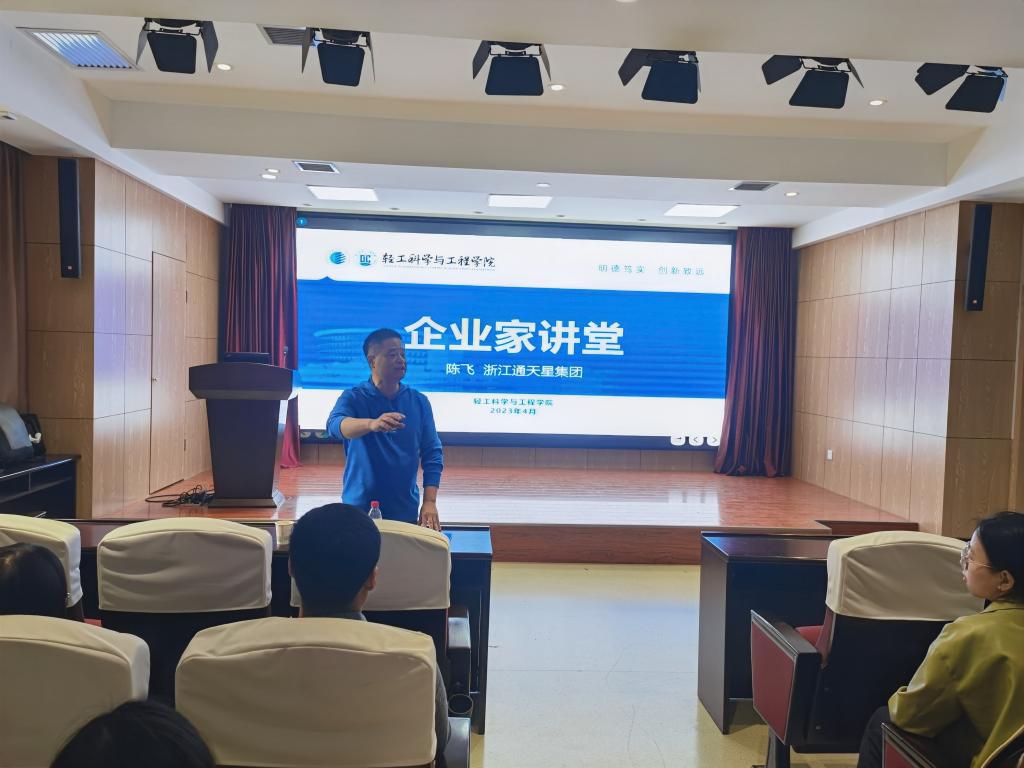 4月11日,應輕工科學與工程學院(柔性電子學院)邀請,浙江通天星集團股份有限公司陳飛董事長做客我校“未央導師論壇”,作了題為“皮革前沿科技的發(fā)展與人才需求”的專題報告。報告會由輕工學院黨委副書記張乾隆主持,學院輕化工程部分師生參加了此次報告會。
