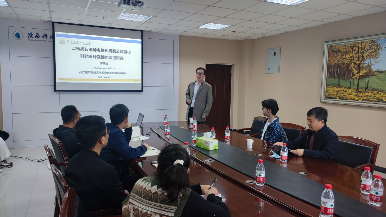 4月14日下午,應(yīng)我校文理學(xué)院和研究生院邀請,西安建筑科技大學(xué)郝勁波副教授做客我?!拔囱雽?dǎo)師論壇”,作了題為“二維類石墨烯電催化析氫及儲氫材料的設(shè)計(jì)及性能調(diào)控研究”的學(xué)術(shù)報(bào)告。報(bào)告由文理學(xué)院院長劉建科主持,文理學(xué)院及我校相關(guān)專業(yè)師生參加了此次報(bào)告會。