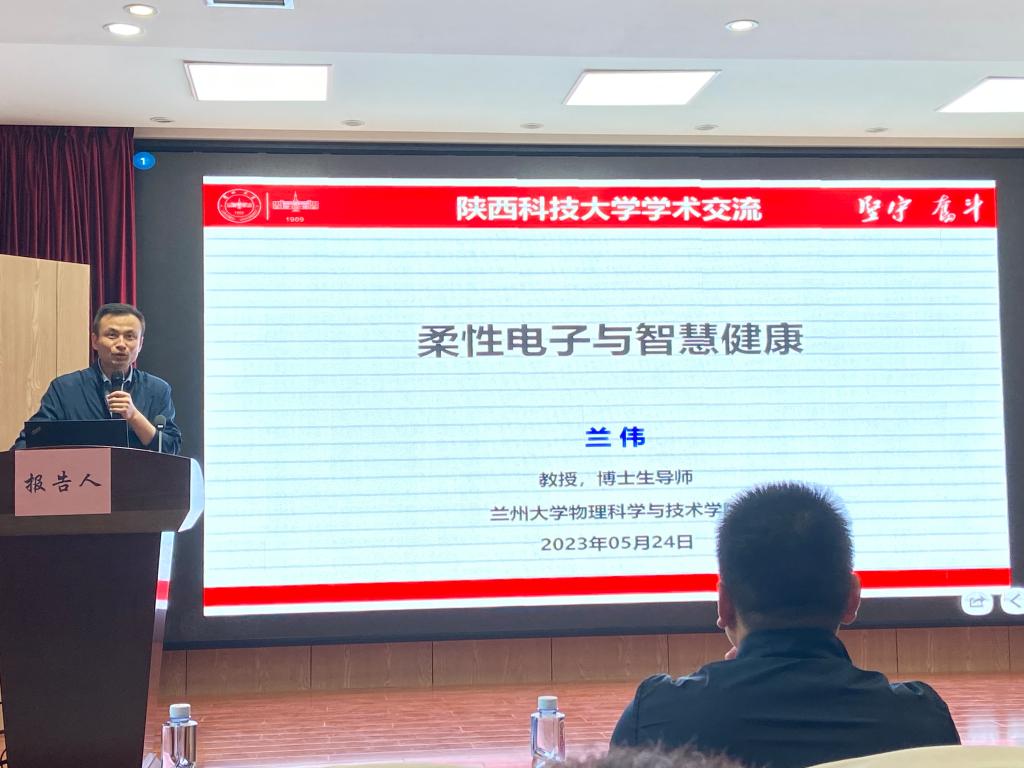 5月24日上午,應(yīng)我校柔性電子學(xué)院、科技處及前沿院的邀請(qǐng),蘭州大學(xué)物理科學(xué)與技術(shù)學(xué)院蘭偉教授做客我校“前沿科學(xué)報(bào)告”,作了題為“柔性電子與智慧健康”的學(xué)術(shù)報(bào)告。報(bào)告由柔性電子學(xué)院院長呂斌主持,我校相關(guān)專業(yè)教師、研究生參加了此次報(bào)告會(huì)。