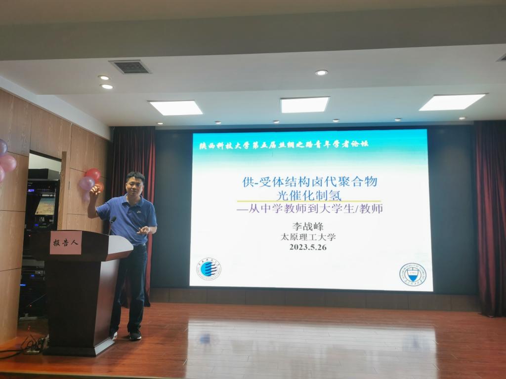 5月26日下午,應(yīng)我校輕工科學(xué)與工程學(xué)院(柔性電子學(xué)院)、科技處及前沿院的邀請(qǐng),太原理工大學(xué)李戰(zhàn)峰教授做客我校“前沿科學(xué)報(bào)告”,作了題為“供-受體結(jié)構(gòu)鹵代聚合物光催化制氫”的學(xué)術(shù)報(bào)告。報(bào)告由輕工學(xué)院副院長(zhǎng)劉國(guó)棟主持,我校相關(guān)專(zhuān)業(yè)教師、研究生參加了此次報(bào)告會(huì)。