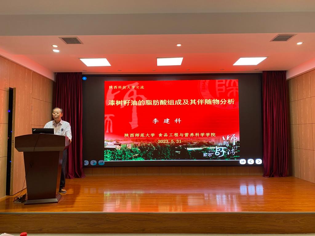 5月31日下午,應(yīng)我校輕工科學(xué)與工程學(xué)院(柔性電子學(xué)院)、科技處及前沿院的邀請(qǐng),陜西師范大學(xué)李建科教授做客我校“前沿科學(xué)報(bào)告”,作了題為“漆樹籽油的脂肪酸組成及其伴隨物分析”的學(xué)術(shù)報(bào)告。報(bào)告由輕工學(xué)院院長(zhǎng)呂斌主持,我校相關(guān)專業(yè)教師、研究生參加了此次報(bào)告會(huì)。