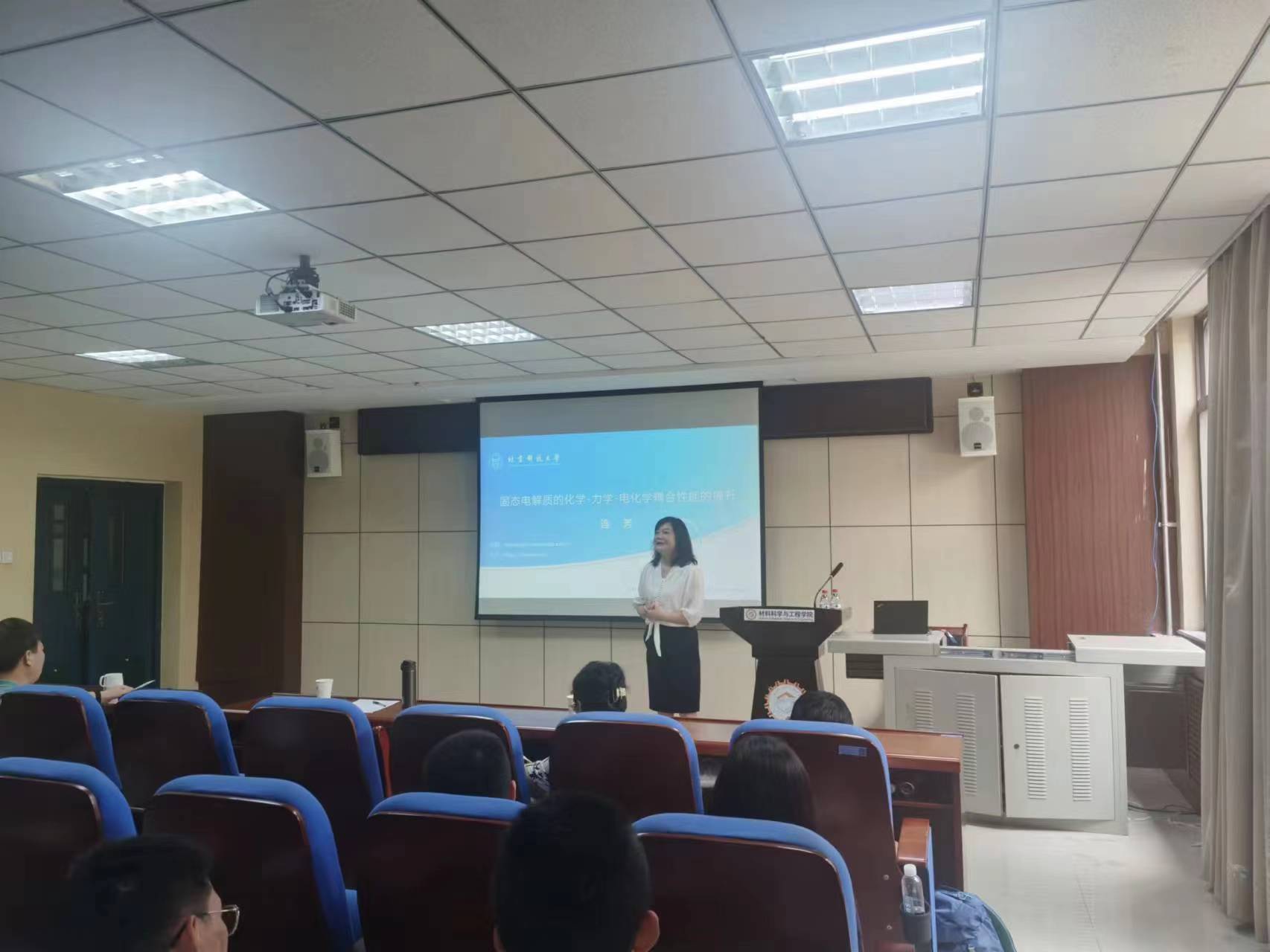連芳教授的報(bào)告題為《固態(tài)電解質(zhì)的化學(xué)-力學(xué)-電化學(xué)耦合穩(wěn)定性的提升》,報(bào)告主要介紹其團(tuán)隊(duì)的研究工作:(1)單離子導(dǎo)體聚合物電解質(zhì)的大分子設(shè)計(jì),(2)“polymer in salt”高鹽濃度固態(tài)聚合物電解質(zhì)的構(gòu)建,(3)無機(jī)導(dǎo)體三維網(wǎng)絡(luò)復(fù)合固態(tài)聚合物,(4)新型高粘彈性固態(tài)聚合物電解質(zhì)的制備,為固態(tài)聚合物電解質(zhì)及其復(fù)合體系兼顧化學(xué)、力學(xué)和電化學(xué)耦合穩(wěn)定性,實(shí)現(xiàn)固態(tài)電池復(fù)合電極和高能量密度固態(tài)電池設(shè)計(jì)和應(yīng)用領(lǐng)域提供技術(shù)支撐。報(bào)告后連芳教授與我校師生進(jìn)行了深入交流。