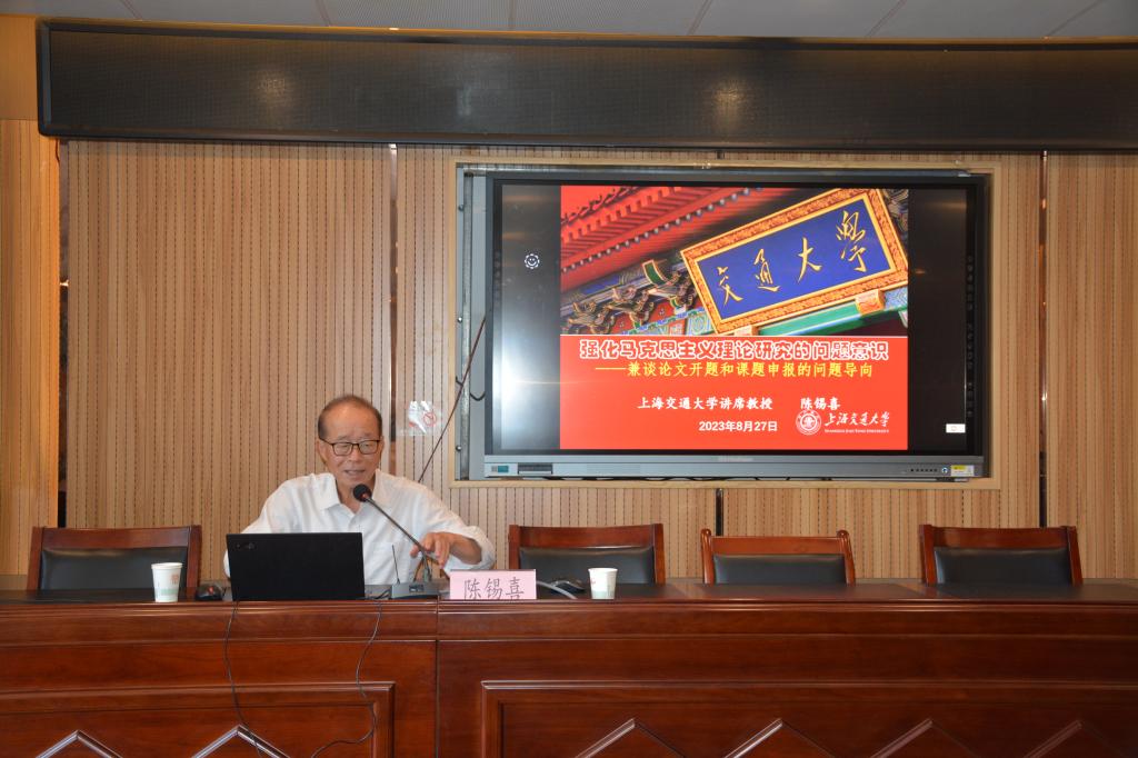 為了進(jìn)一步提升馬院師生理論研究的問(wèn)題意識(shí),強(qiáng)化課題申報(bào)與論文選題的問(wèn)題導(dǎo)向,馬克思主義學(xué)院邀請(qǐng)上海交通大學(xué)陳錫喜教授于8月27日在學(xué)術(shù)報(bào)告廳為全體師生作了題為《強(qiáng)化馬克思主義理論研究的問(wèn)題意識(shí)——兼談?wù)撐拈_(kāi)題和課題申報(bào)的問(wèn)題導(dǎo)向》的學(xué)術(shù)講座。講座由馬院院長(zhǎng)吳明永教授主持。