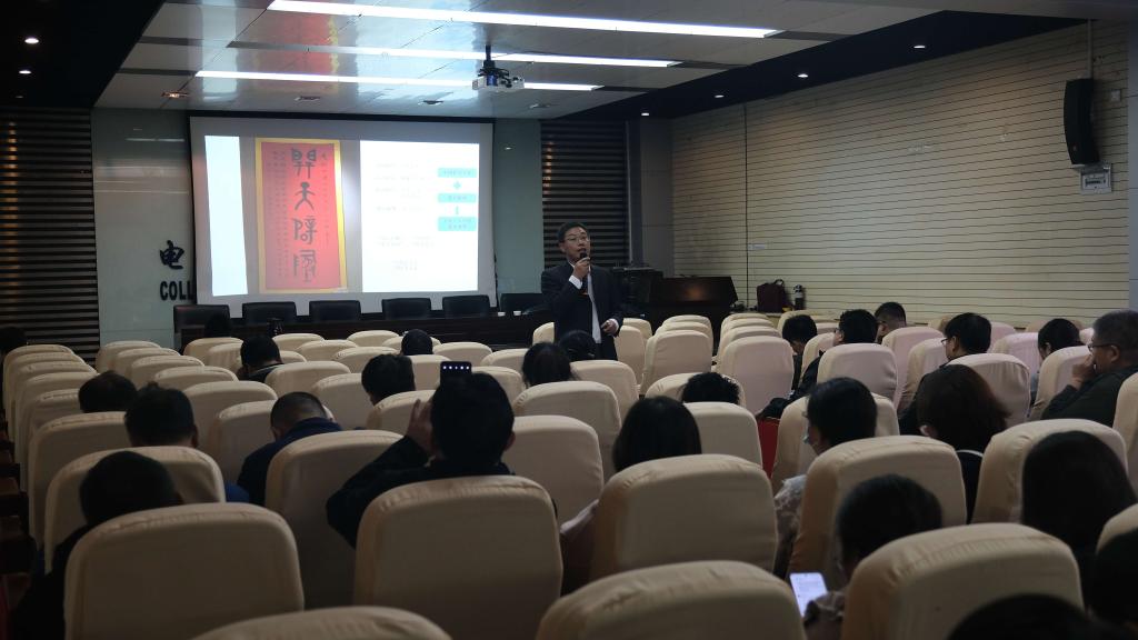 10月18日下午,為全面推動(dòng)課程思政建設(shè),提升教師課程思政改革能力,落實(shí)立德樹人根本任務(wù),在學(xué)校教務(wù)處的支持下,電子信息與人工智能學(xué)院邀請(qǐng)齊魯工業(yè)大學(xué)(山東省科學(xué)院)電子電氣與控制學(xué)部肖中俊教授作了題為《課程思政賦能專業(yè)課程的設(shè)計(jì)思路與方法》的報(bào)告。電智學(xué)院院長馬令坤、副院長雷濤以及全院教師參加了本次報(bào)告會(huì),報(bào)告由電智學(xué)院院長助理任喜偉主持。