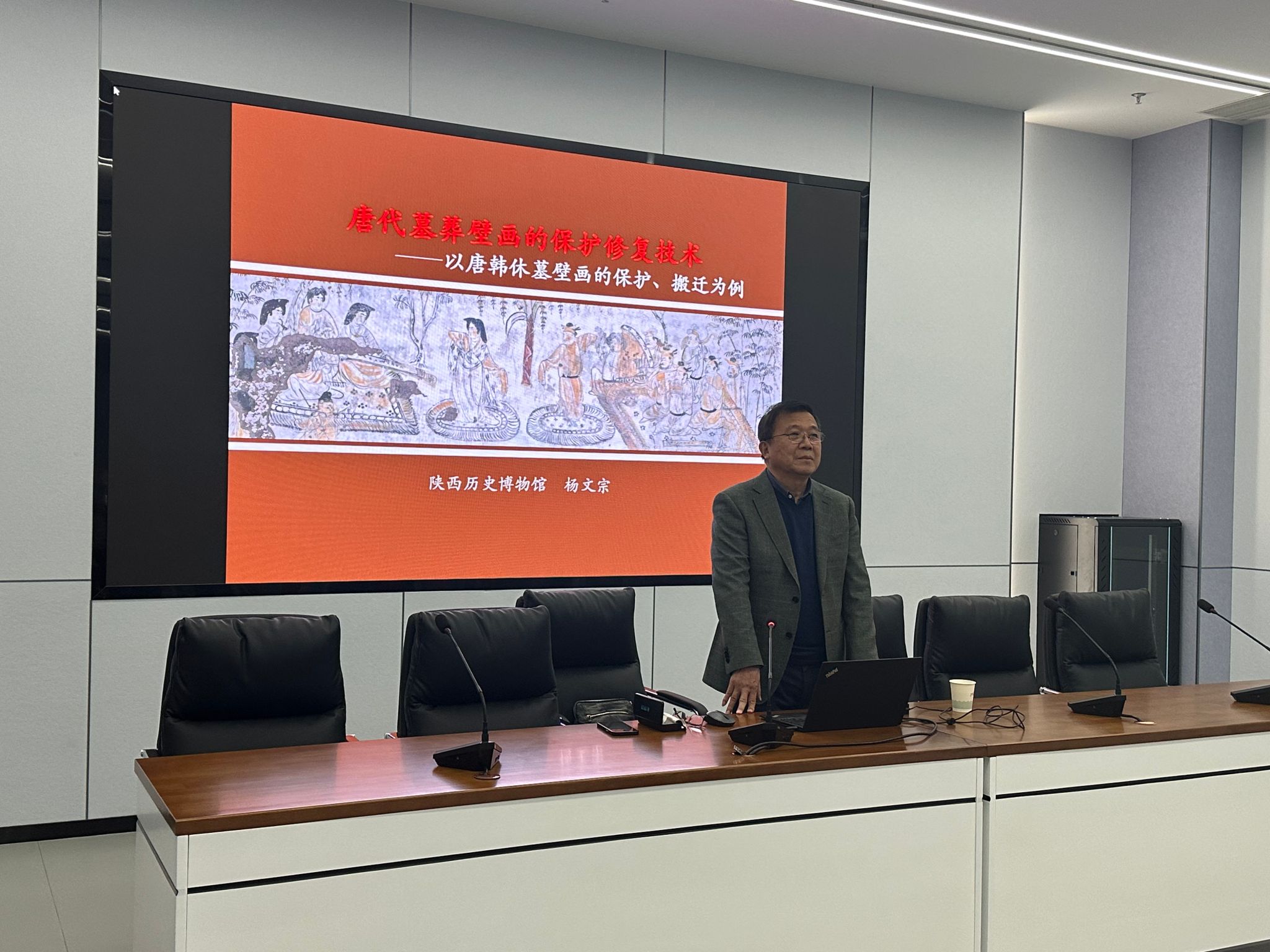 11月7日,應我??萍继?、材料科學與工程學院(文物保護科學與技術(shù)學院)邀請,陜西歷史博物館楊文宗研究館員做客我?!扒把乜茖W報告”,作了題為“唐代墓葬壁畫的保護修復技術(shù)——以唐韓休墓壁畫的保護、搬遷為例”的學術(shù)報告。報告在至誠會議室進行,相關專業(yè)教師、研究生參加了本次報告會,報告由院長朱建鋒教授主持。