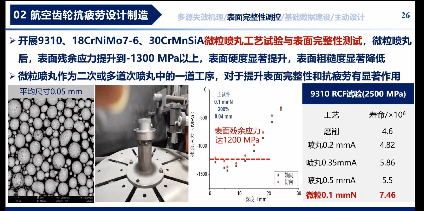 劉懷舉介紹了重慶大學機械傳動國家重點實驗室和高速重載齒輪傳動研究團隊的基本情況。以航空齒輪基礎(chǔ)數(shù)據(jù)缺失、系統(tǒng)設(shè)計嚴重依賴經(jīng)驗、軟硬件支撐條件不足等諸多挑戰(zhàn)為切入點,詳細講解了團隊在航空齒輪抗疲勞設(shè)計制造、航發(fā)傳動系統(tǒng)高功率密度設(shè)計、航發(fā)傳動自主軟件與測試臺架等方面所做的研究工作。最后,結(jié)合國家重大裝備和企業(yè)需求,分享了航發(fā)齒輪傳動設(shè)計制造的研究趨勢。
