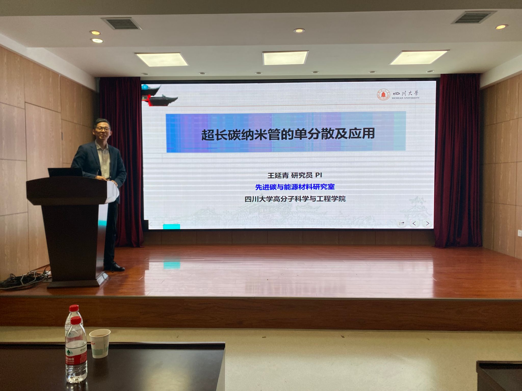 4月14日,四川大學王延青特聘研究員應我校輕工科學與工程學院(柔性電子學院)、科技處及前沿院邀請,做客我?!扒把乜茖W報告”,作了題為“超長碳納米管的單分散及應用研究”的學術報告。報告會由輕工學院范倩倩副教授主持,學院相關專業(yè)教師、研究生及本科生參加了此次報告會。