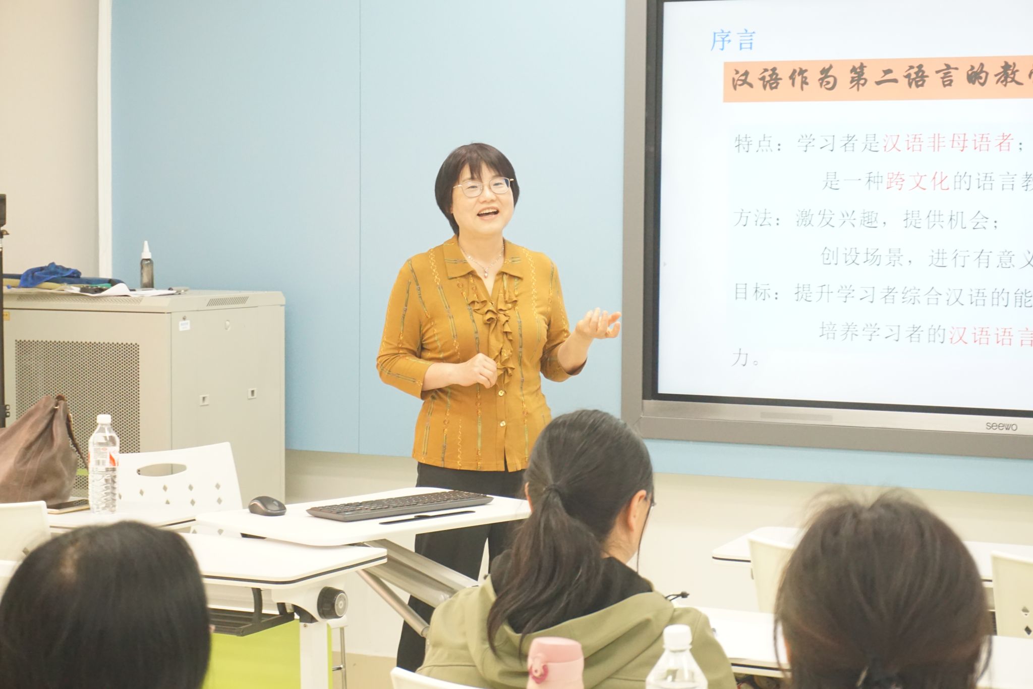 現(xiàn)場教師認真聽講并積極提問,紛紛表示,通過此次講座培訓,自身對漢語語法教學有了更深入更系統(tǒng)的了解,為日后的教學實踐工作提供了豐富的信息與理論支持。