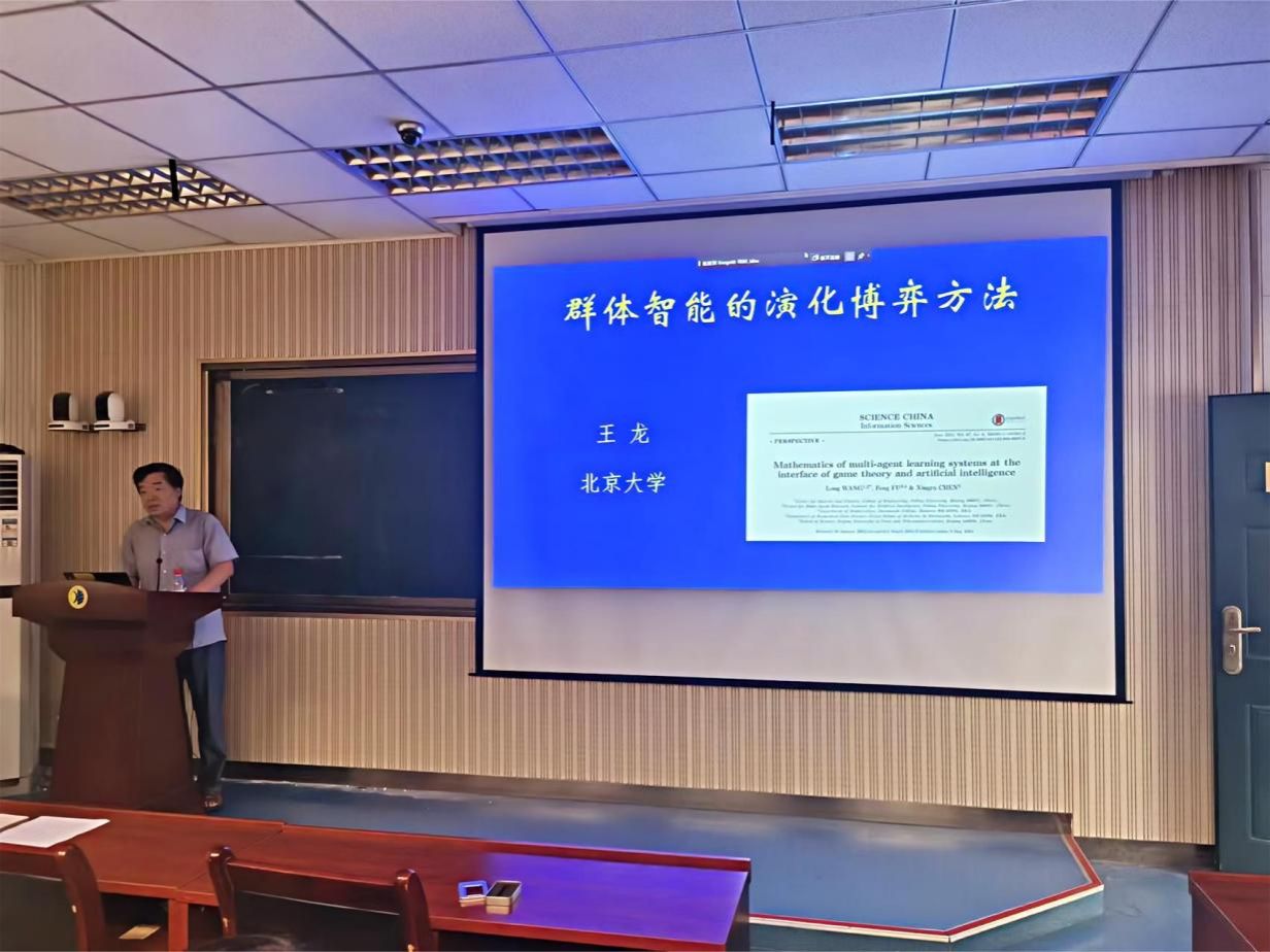 在報(bào)告中,王龍教授深入淺出地介紹了群體智能的基本概念和演化博弈的原理。他詳細(xì)講解了群體智能在自然界和控制系統(tǒng)中的表現(xiàn)形式,如“蟻群”等仿生算法,展示了群體智能在解決復(fù)雜優(yōu)化問(wèn)題中的優(yōu)勢(shì)。同時(shí),王教授通過(guò)4篇跨度上百年的“里程碑”式論文,詳細(xì)闡述了如何利用演化博弈方法來(lái)解決復(fù)雜系統(tǒng)中的問(wèn)題,如市場(chǎng)經(jīng)濟(jì)中的策略選擇以及智能交通系統(tǒng)中的路徑優(yōu)化等。報(bào)告內(nèi)容豐富,既有理論高度,又結(jié)合了實(shí)踐經(jīng)驗(yàn),使在場(chǎng)師生受益匪淺。此外,王教授還介紹了其課題組在該領(lǐng)域的最新研究進(jìn)展和成果,激發(fā)了師生們的濃厚興趣。