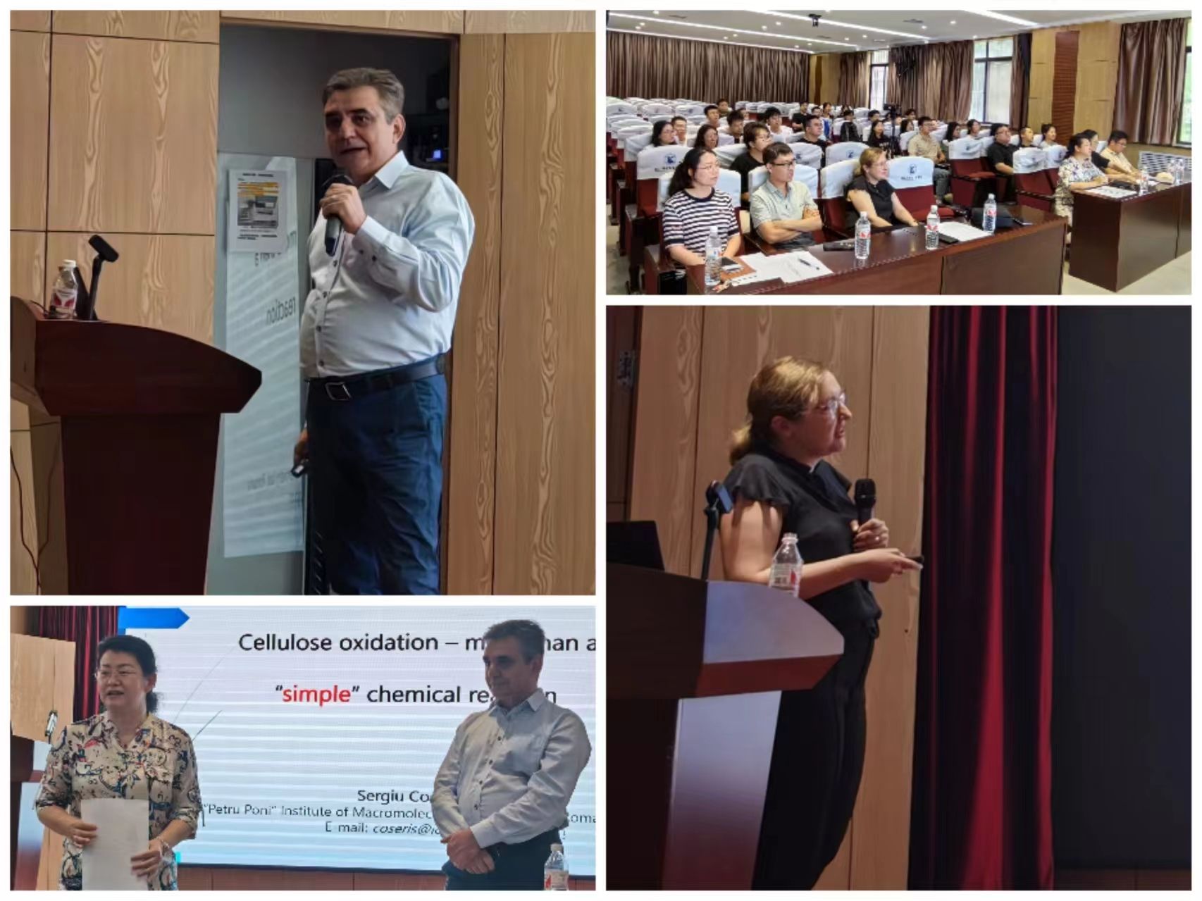 7月10日,應我校輕工科學與工程學院(柔性電子學院)、國際合作與交流處、科技處邀請,羅馬尼亞科學院皮特魯-龐尼高分子研究所 Sergiu Coseri 教授和Andreea Laura Scutaru研究員做客我?!扒把乜茖W報告”和“未央導師論壇”,并作了題為“Cellulose oxidation – more than a “simple” chemical reaction”和“A journey from Romania beauty to the beauty of polymer-based materials used in photocatalytic applications or as fluorescent sensors”的報告,報告會由國際處處長張素風主持,學院相關(guān)教師及研究生參加了此次報告會。