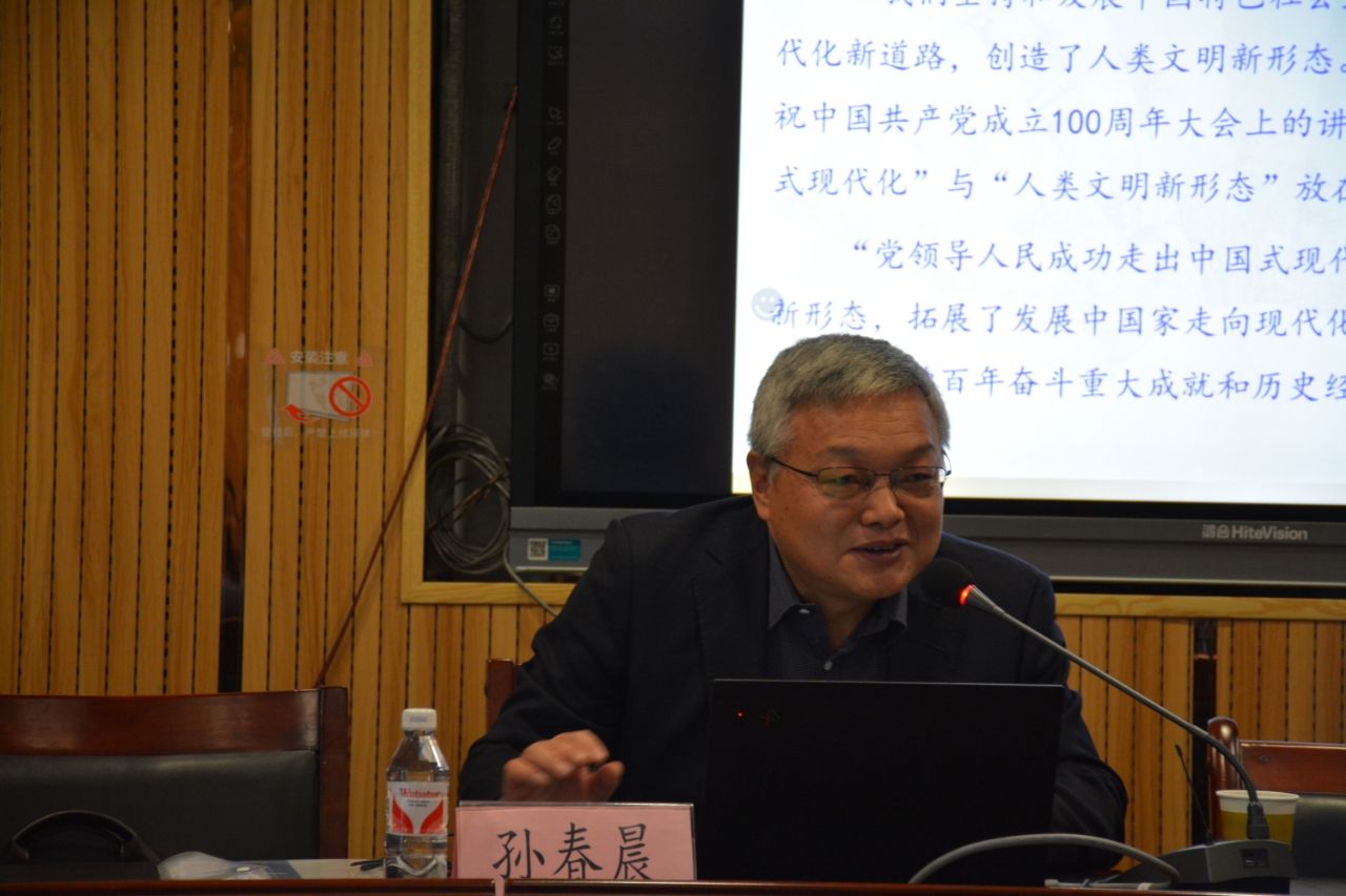 孫春晨研究員緊緊圍繞“中國式現(xiàn)代化與人類文明新形態(tài)”這一主題,從關于中國式現(xiàn)代化與人類文明新形態(tài)的重要論述、中國式現(xiàn)代化與人類文明新形態(tài)的密切關聯(lián)、創(chuàng)造人類文明新形態(tài)是中國式現(xiàn)代化的本質要求、建立在“兩個結合”基礎上的人類文明新形態(tài)等四個方面展開系統(tǒng)闡釋。最后,對師生感興趣的問題進行了解答并提出建議。